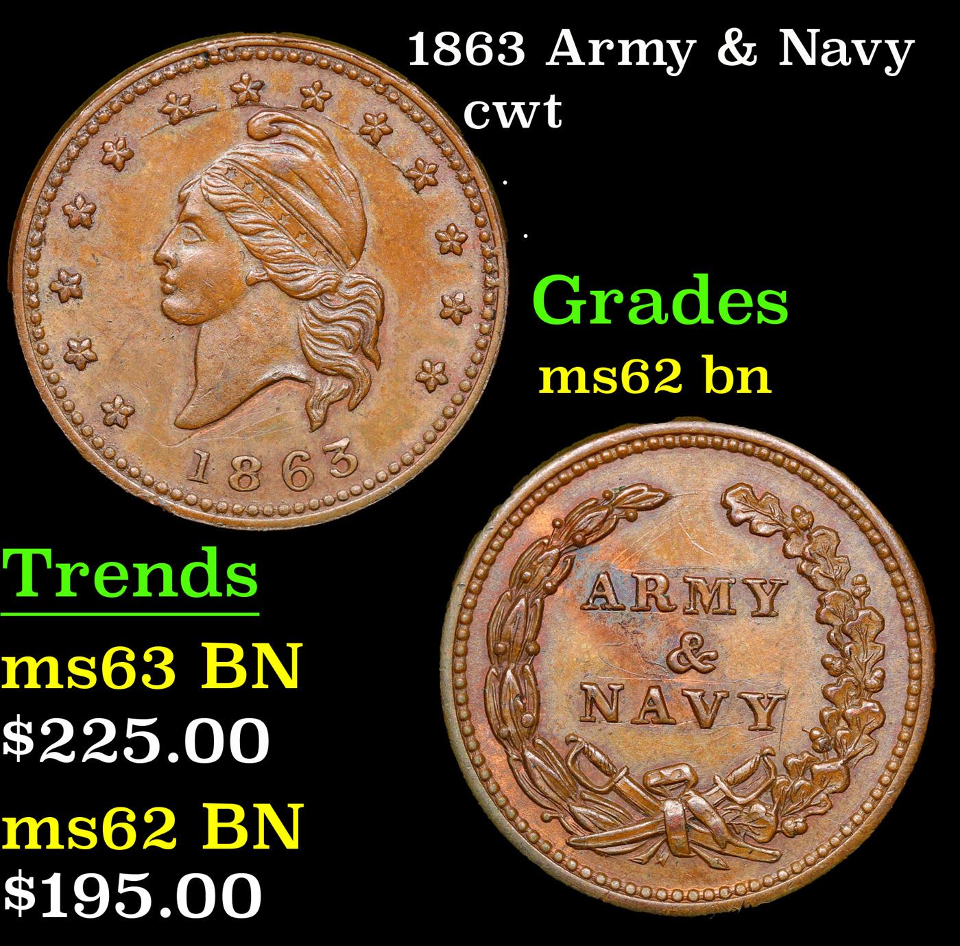 1863 Army & Navy Civil War Token 1c Grades Select Unc BN.