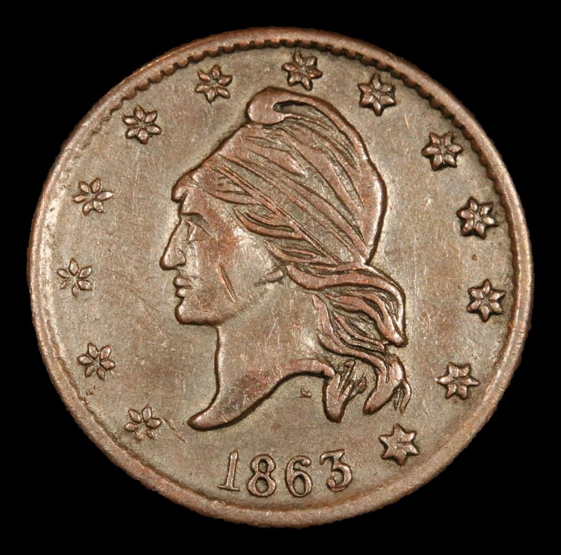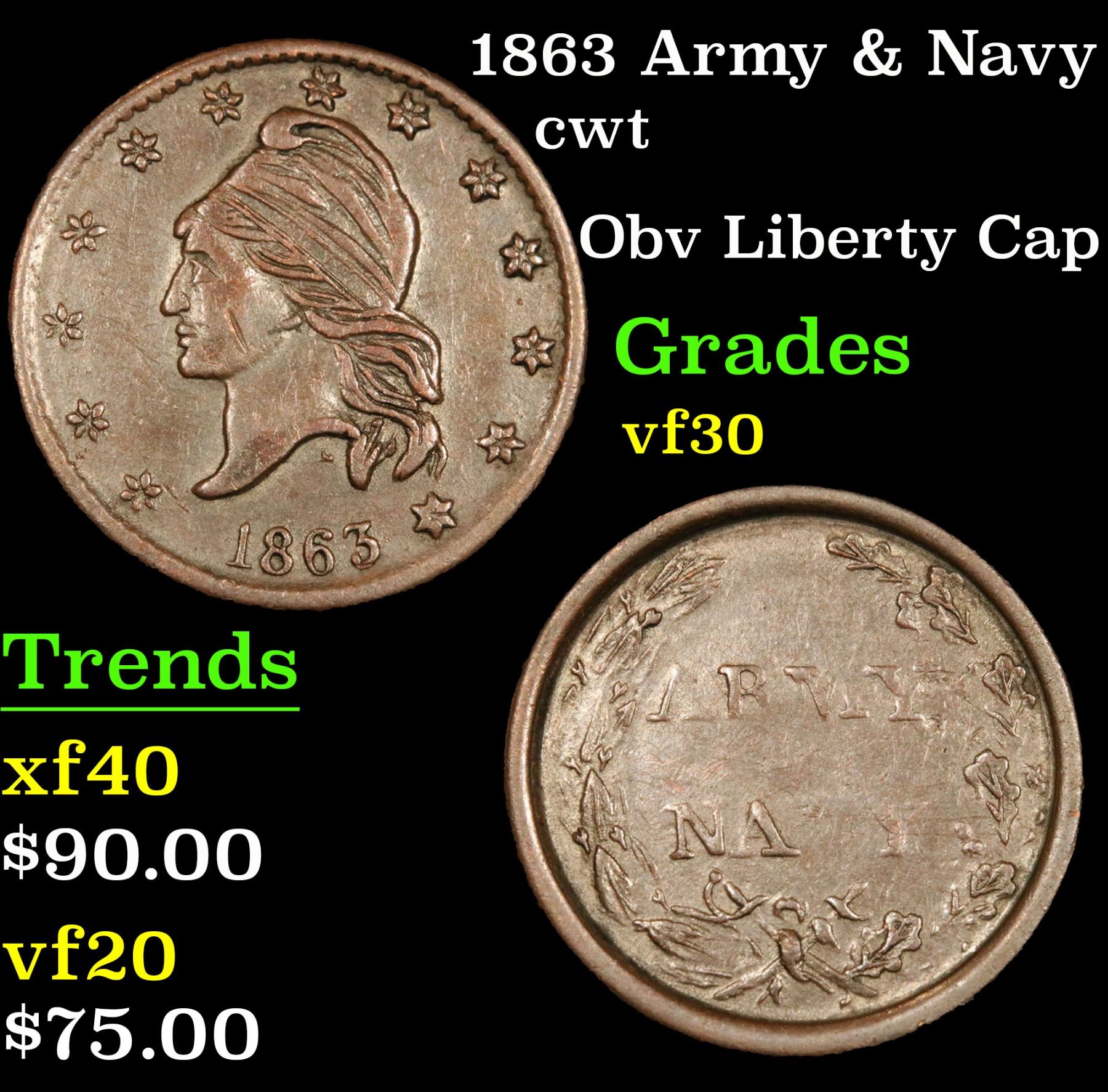 1863 Army & Navy Civil War Token 1c Grades vf++. Obv Liberty Cap