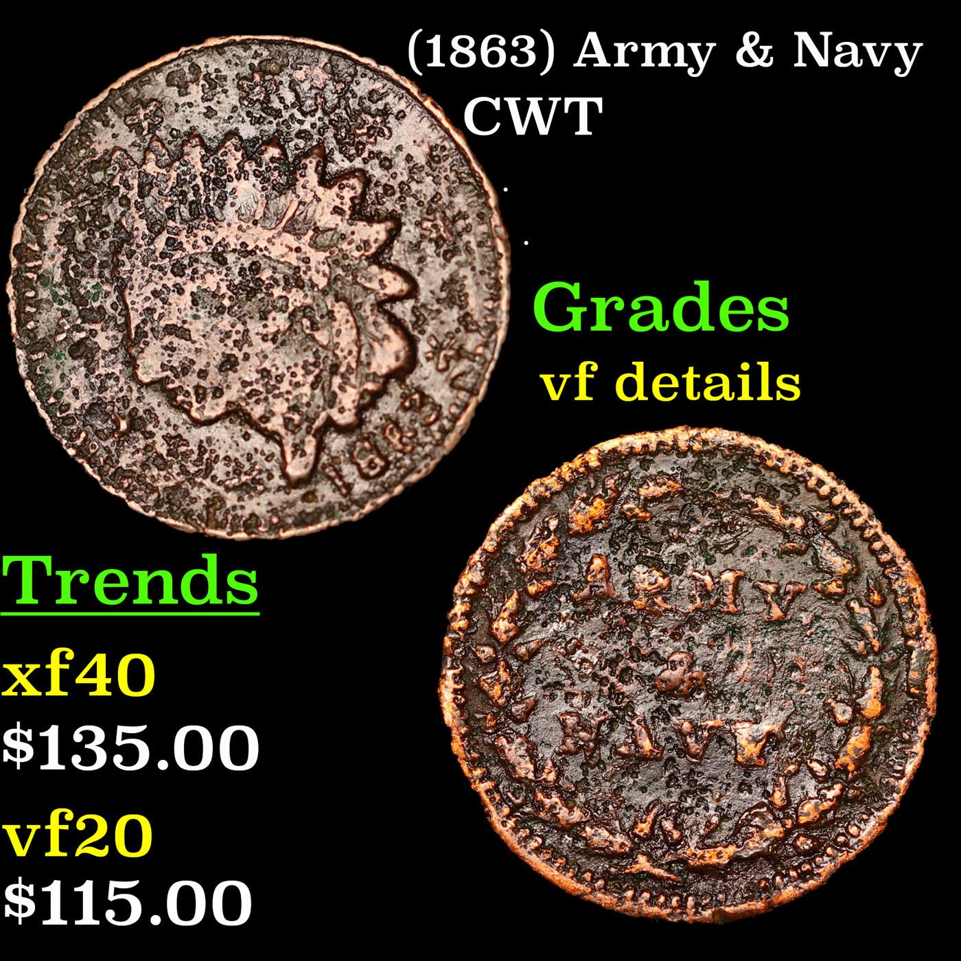 (1863) Army & Navy Civil War Token 1c Grades vf+.