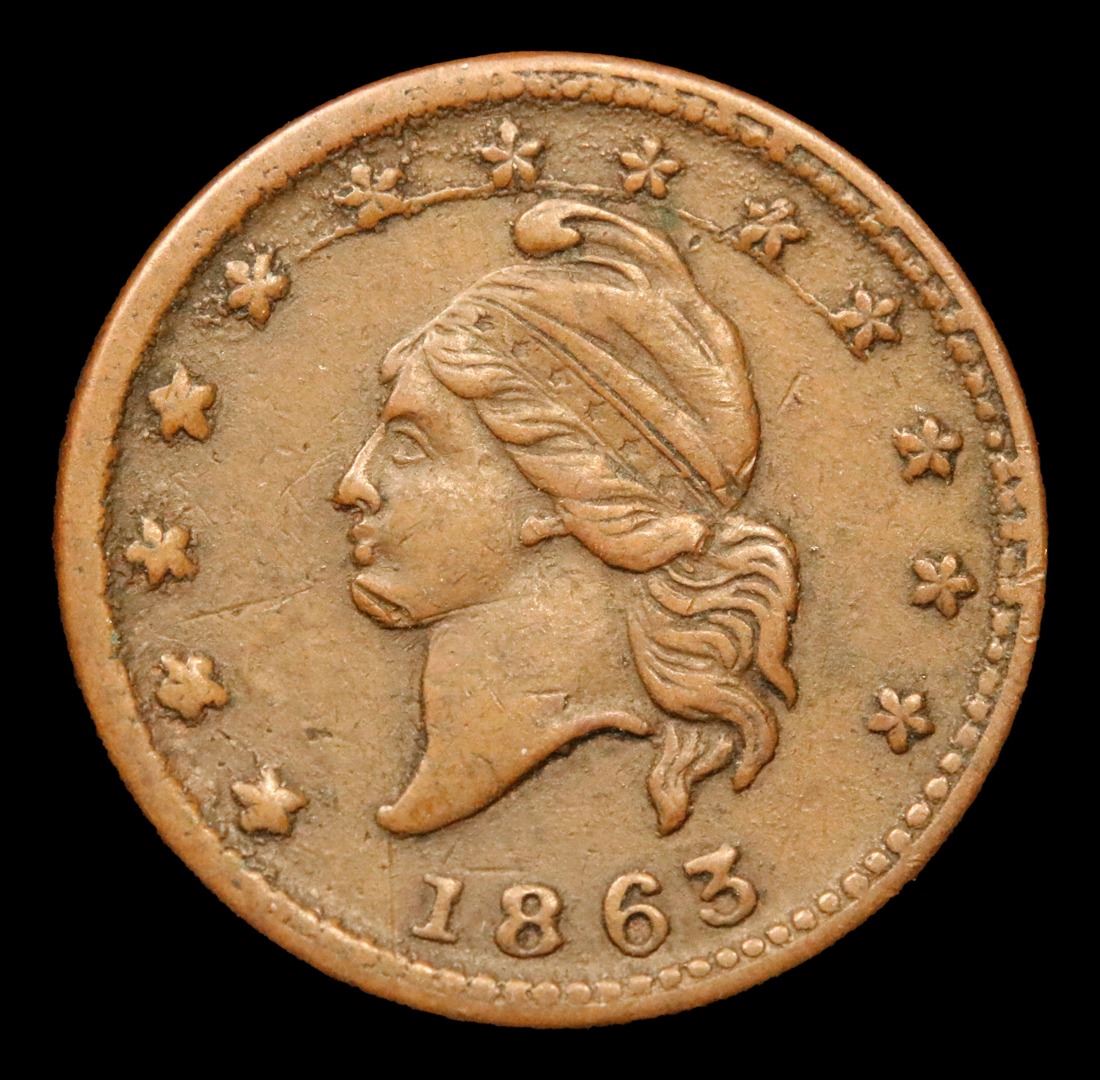 1863 Army & Navy Civil War Token 1c Grades xf+.