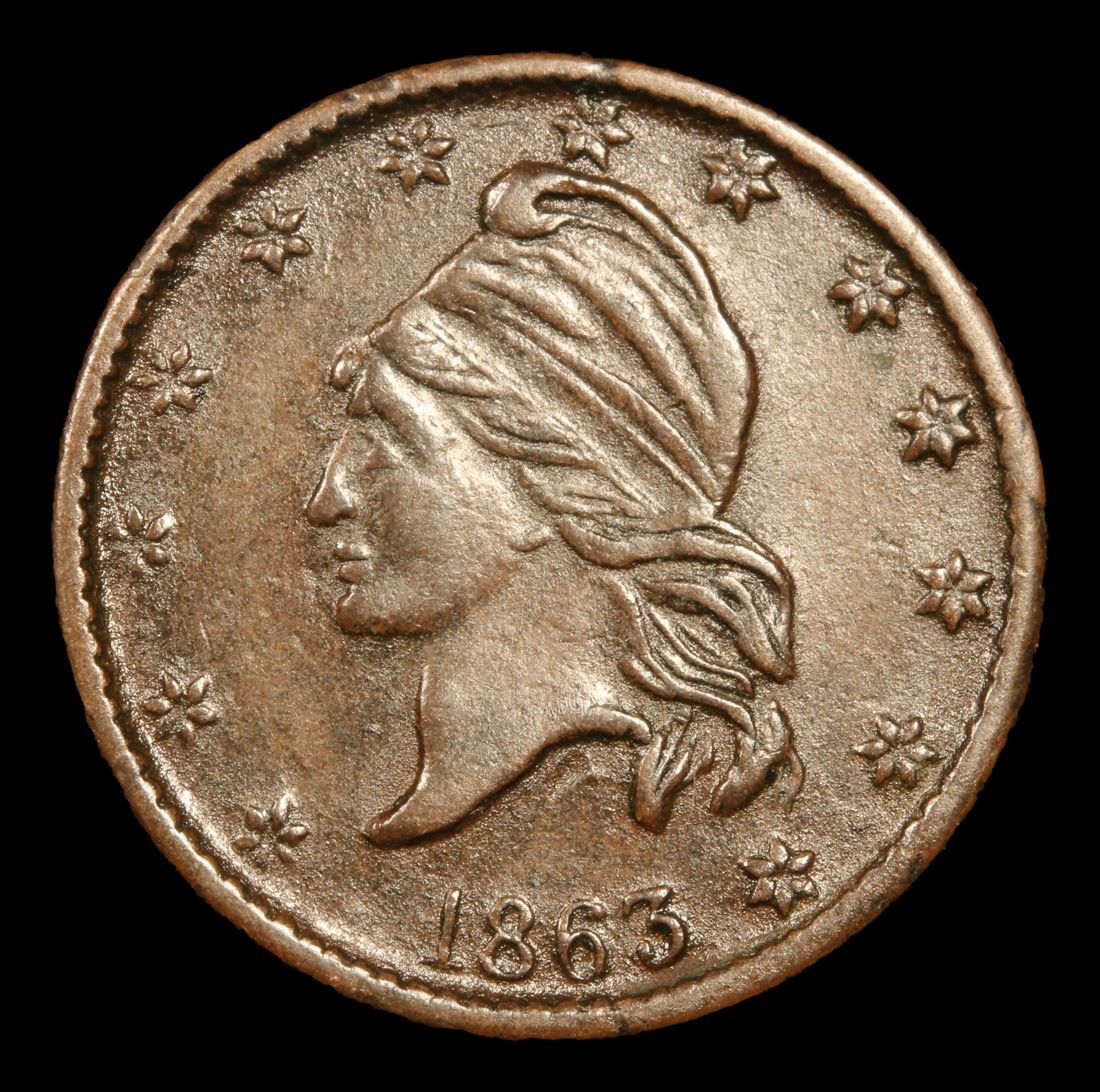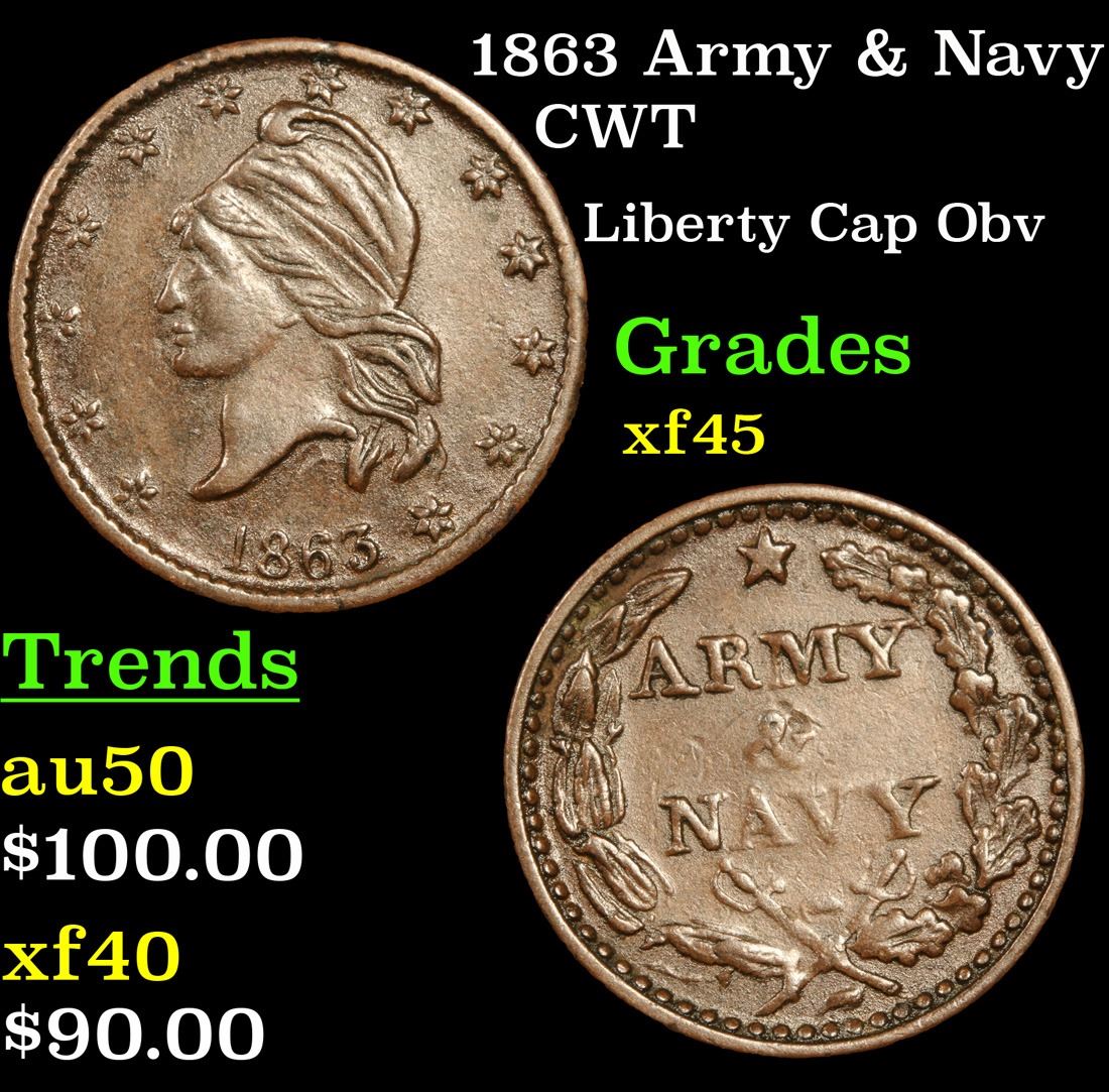 1863 Army & Navy Liberty Cap Obv . Civil War Token 1c Grades xf+.