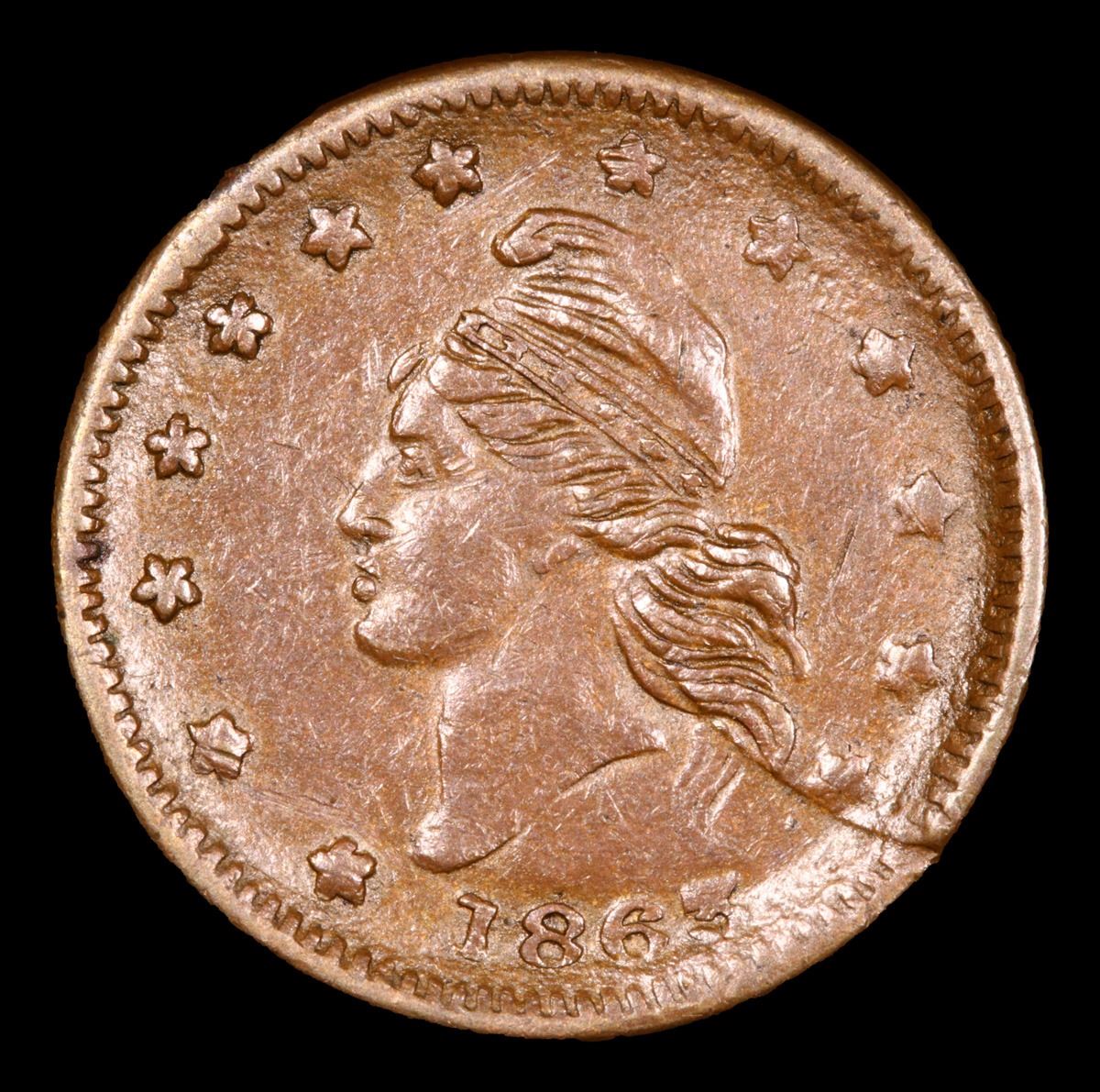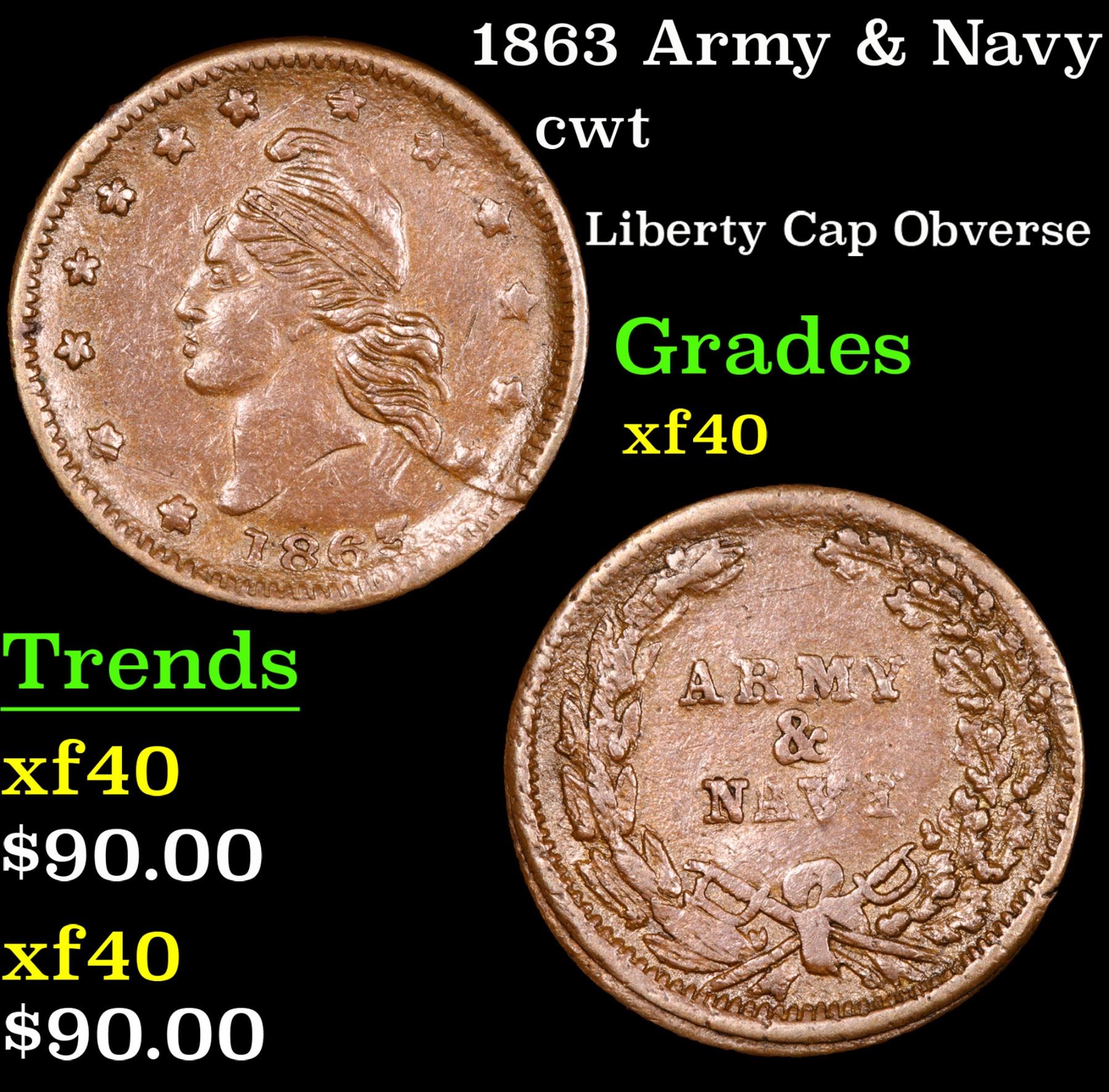 1863 Army & Navy Liberty Cap Obverse . Civil War Token 1c Grades xf.