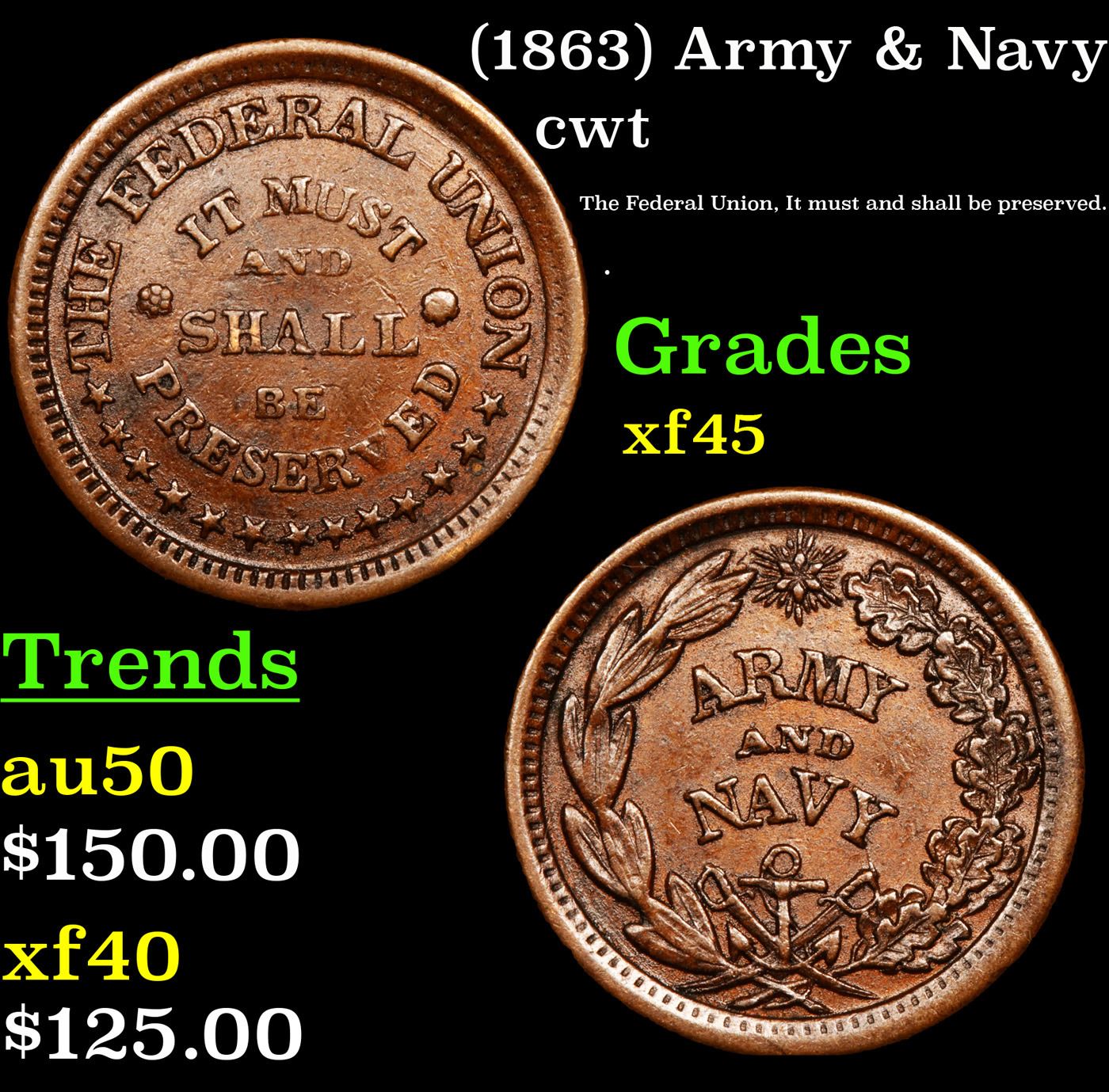 (1863) Army & Navy Civil War Token 1c Grades xf+.