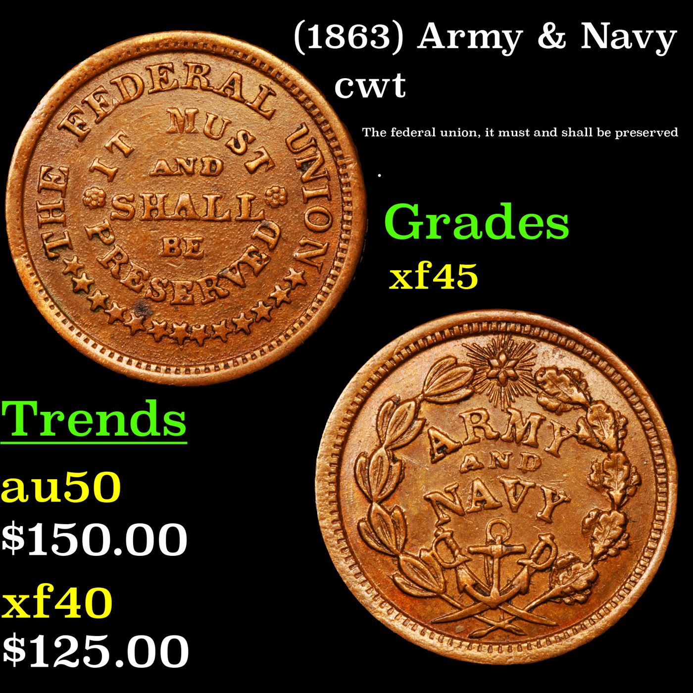 (1863) Army & Navy Civil War Token 1c Grades xf+.