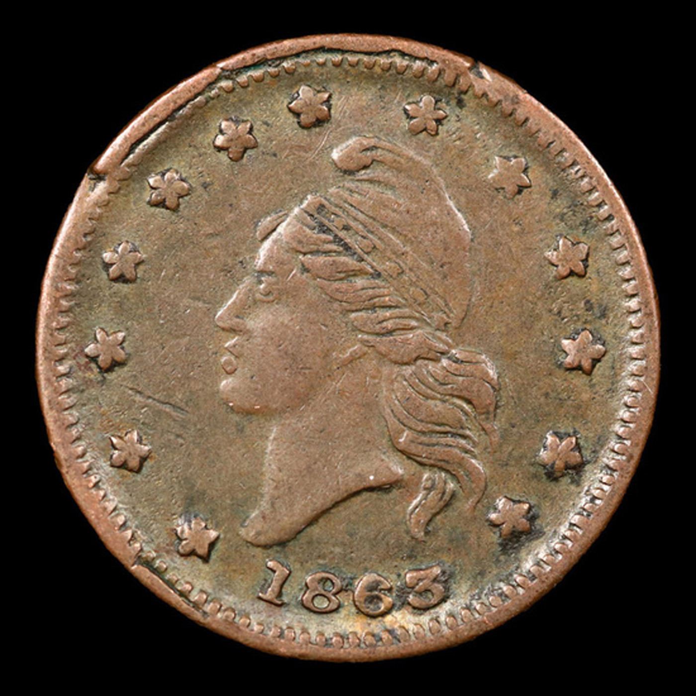 1863 Army & Navy Civil War Token 1c Grades xf+.