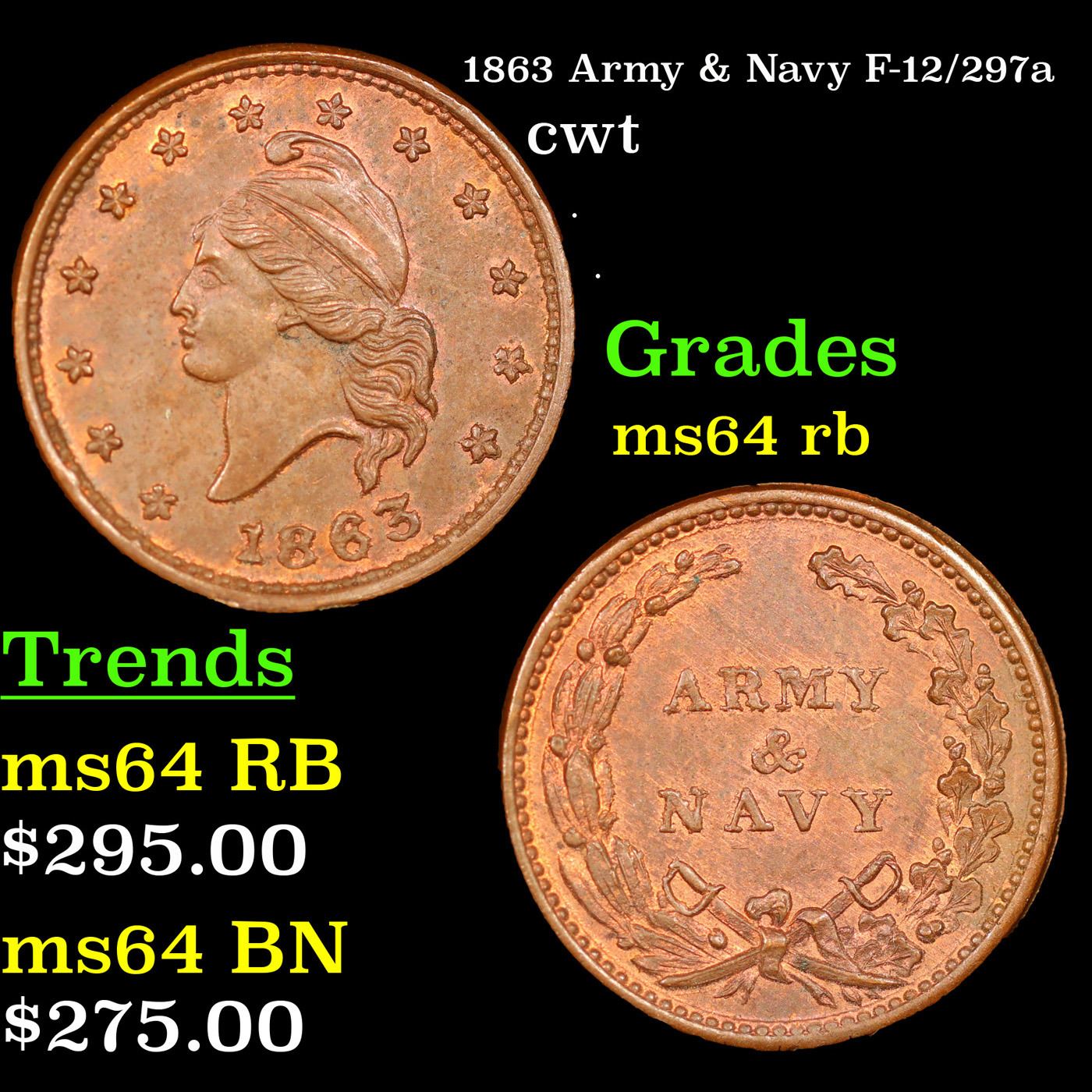 1863 Army & Navy F-12/297a Civil War Token 1c Grades Choice Unc RB.