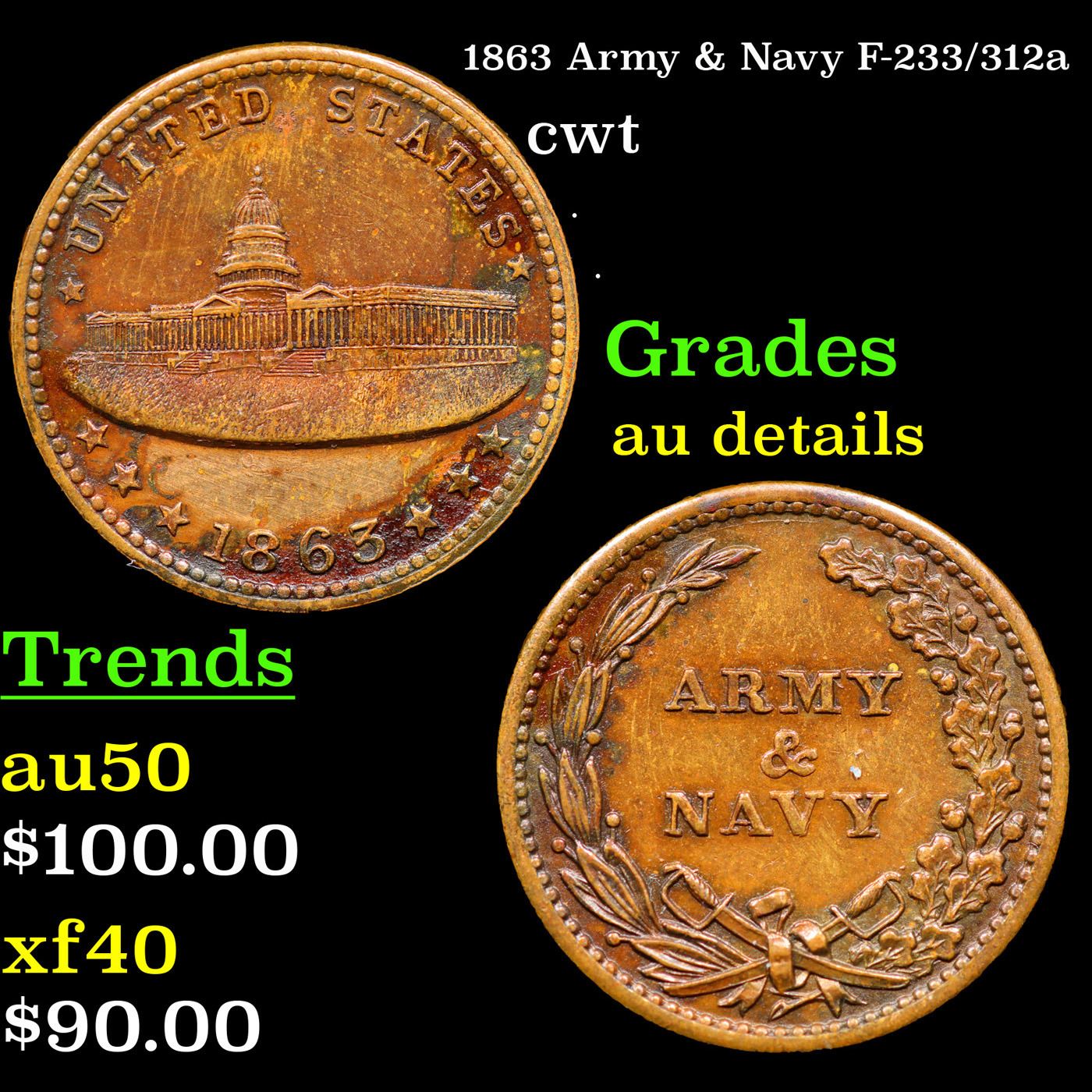 1863 Army & Navy F-233/312a Civil War Token 1c Grades AU Details.