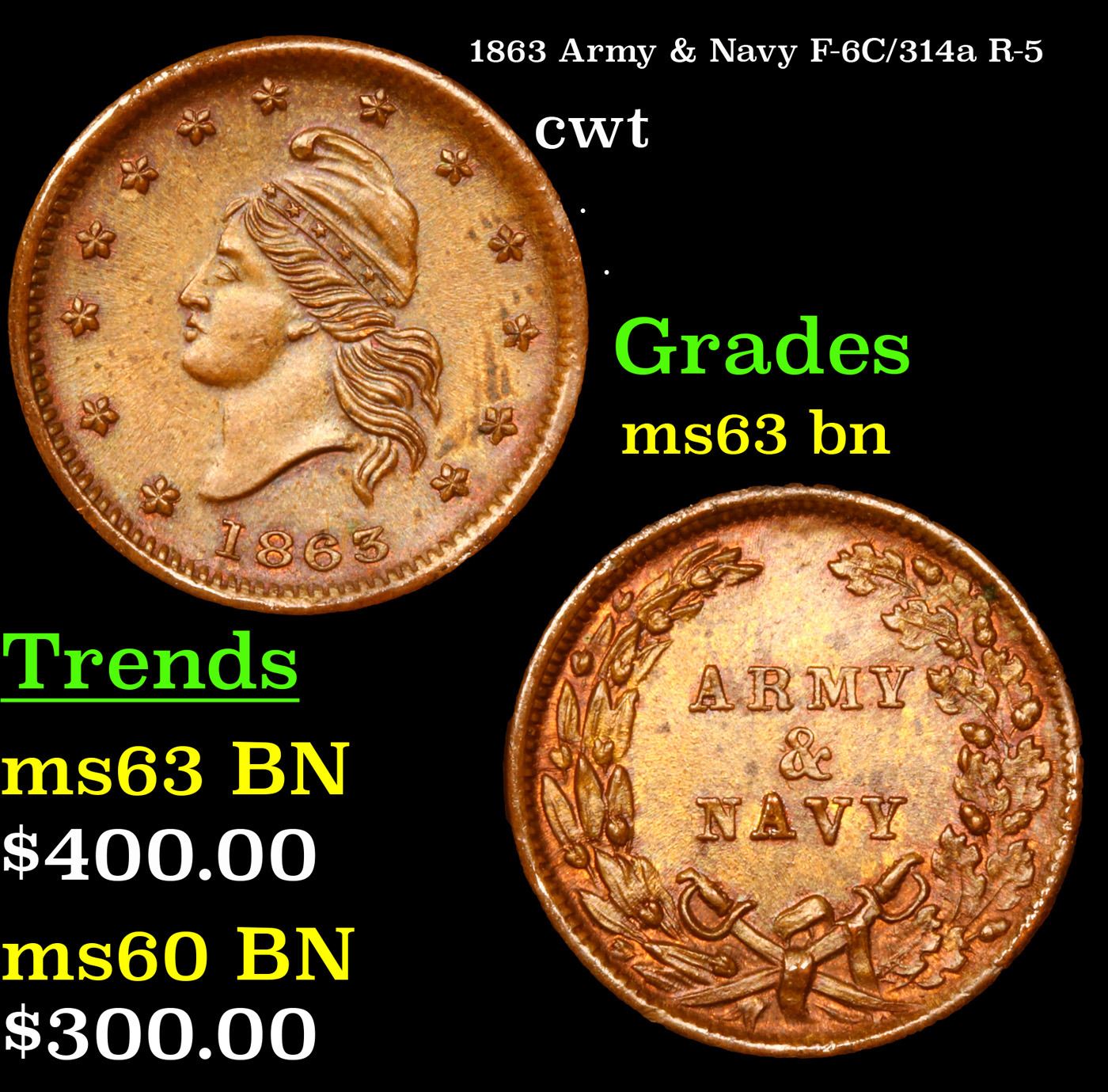 1863 Army & Navy F-6C/314a R-5 Civil War Token 1c Grades Select Unc BN.