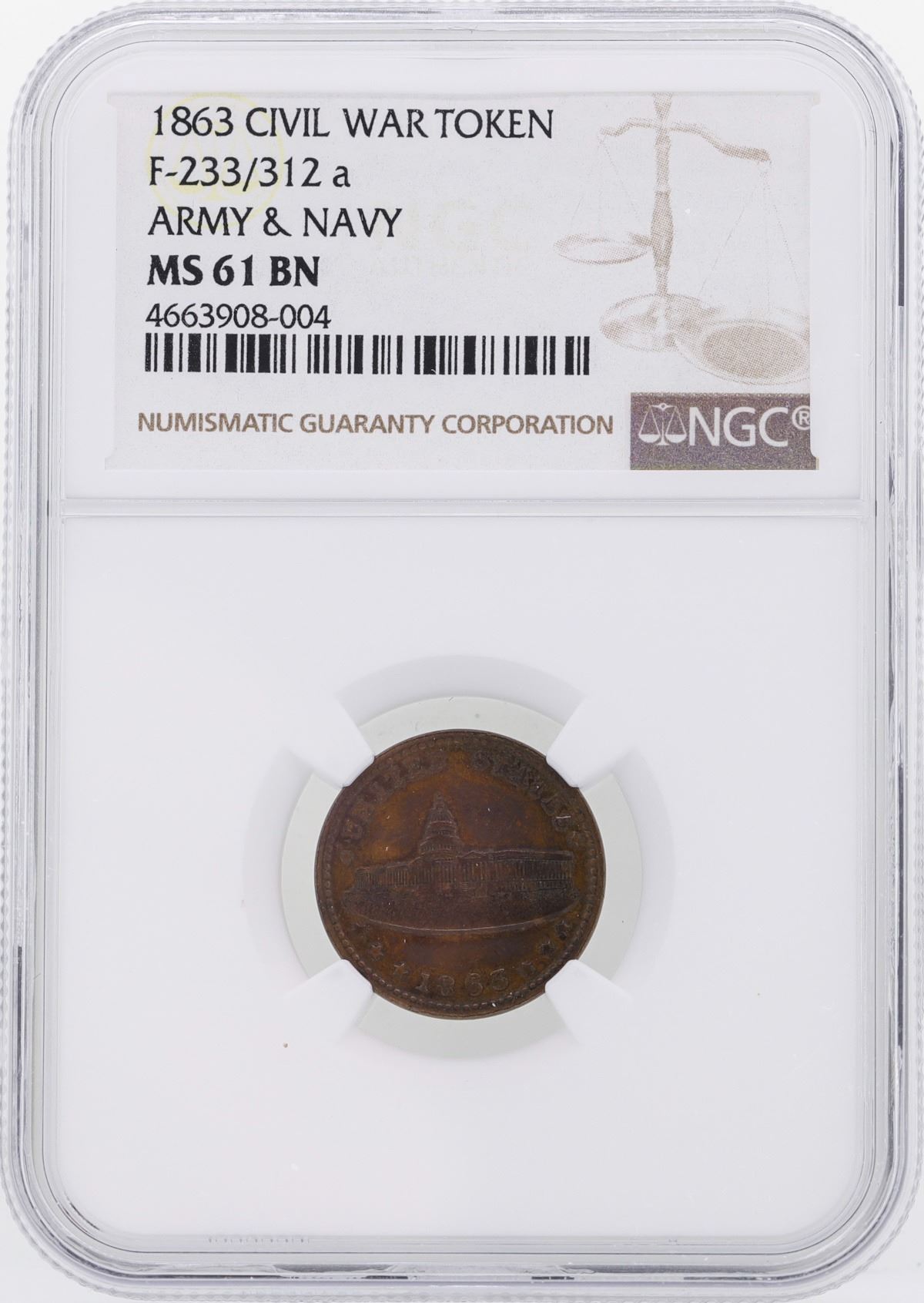 One 1863 Army & Navy Civil War Token NGC MS61BN.