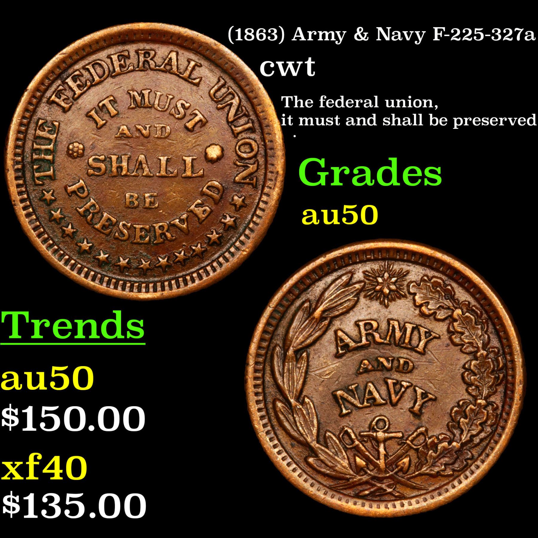 (1863) Army & Navy F-225-327a Civil War Token 1c Grades AU, Almost Unc.