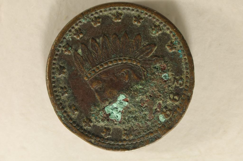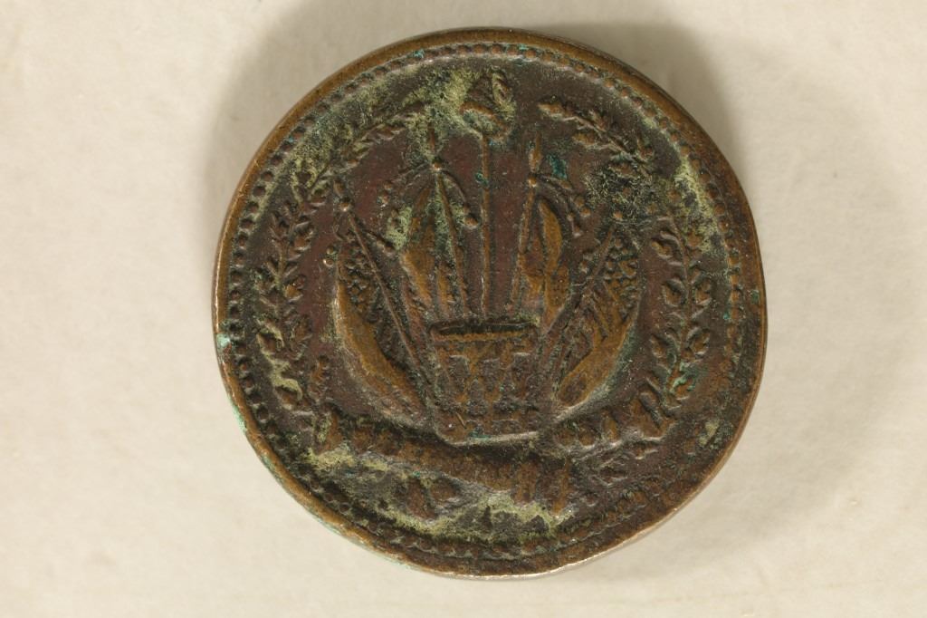 FLAG AND DRUMS ON REVERSE, SOME VIRDIGRIS