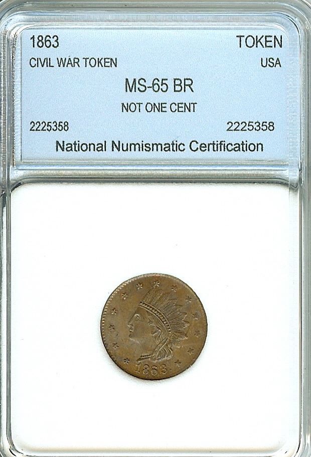 1863 CIVIL WAR TOKEN "NOT ONE CENT" NNC MS-65 BROWN