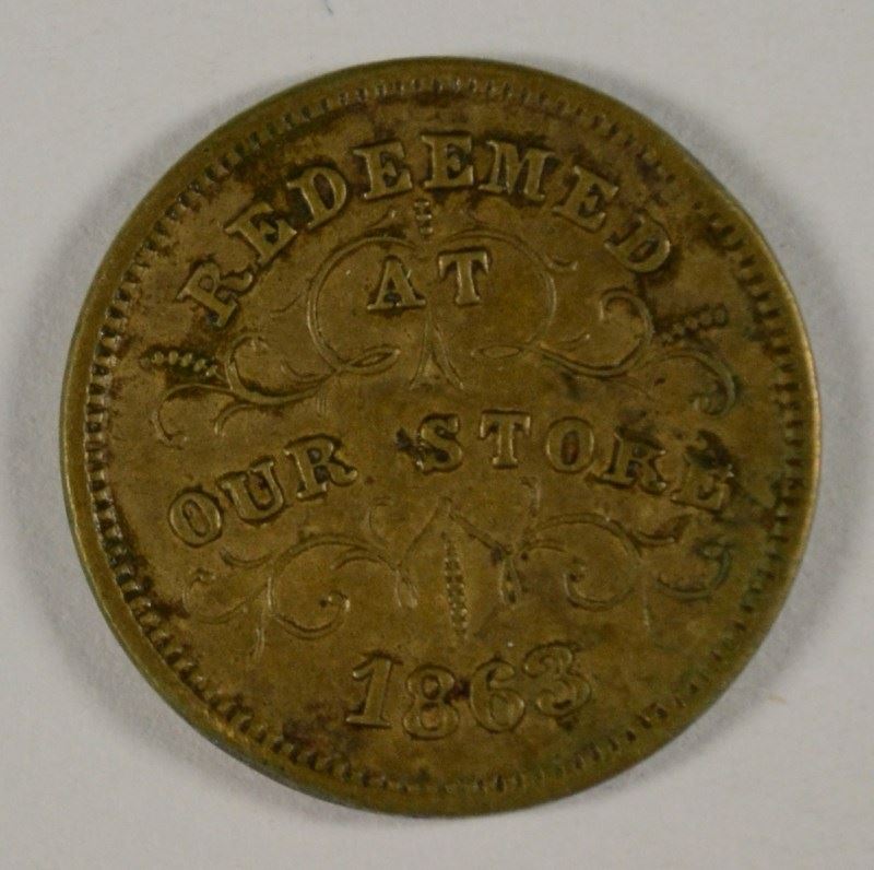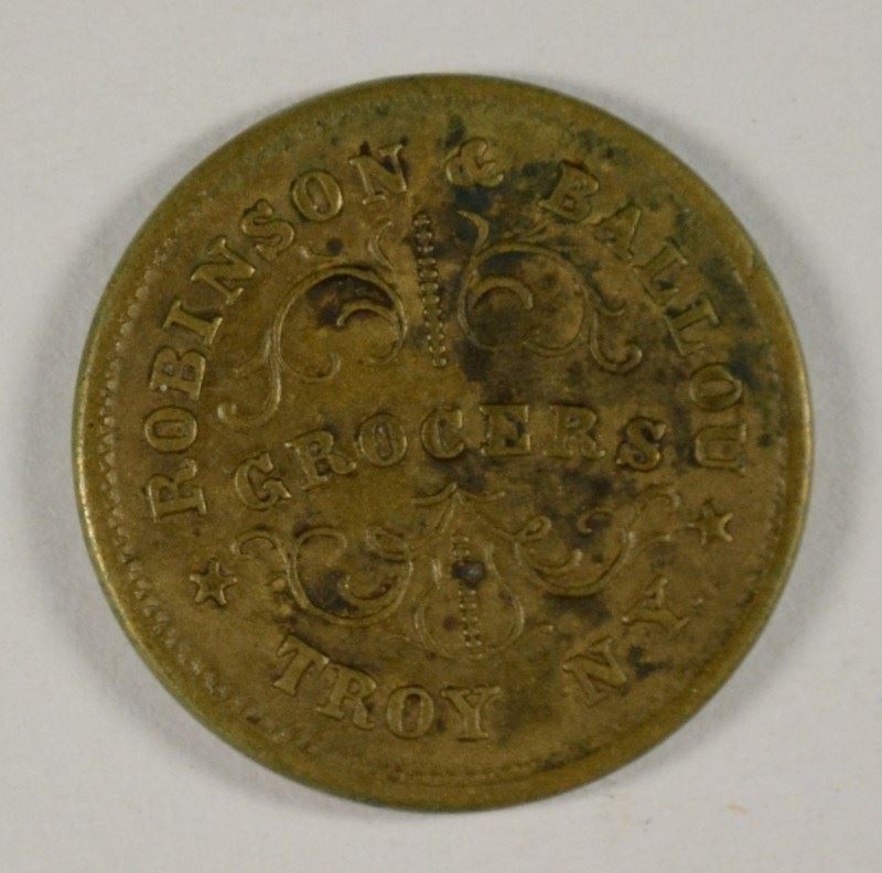 1863 CIVIL WAR TOKEN (STORE CARD) (ROBINSON & BALLOU GROCERIES) TROY, NY G/VG