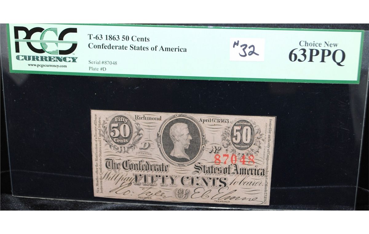 1863 CONFEDERATE STATES OF AMERICA 50 CENT FRACTIONAL CURRENCY - PCGS 63PPQ #87048