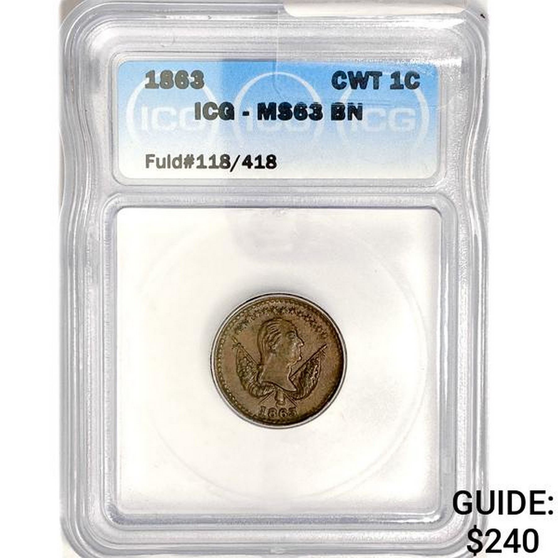 1863 CWT Cent Flud#118/418 ICG MS63 BN