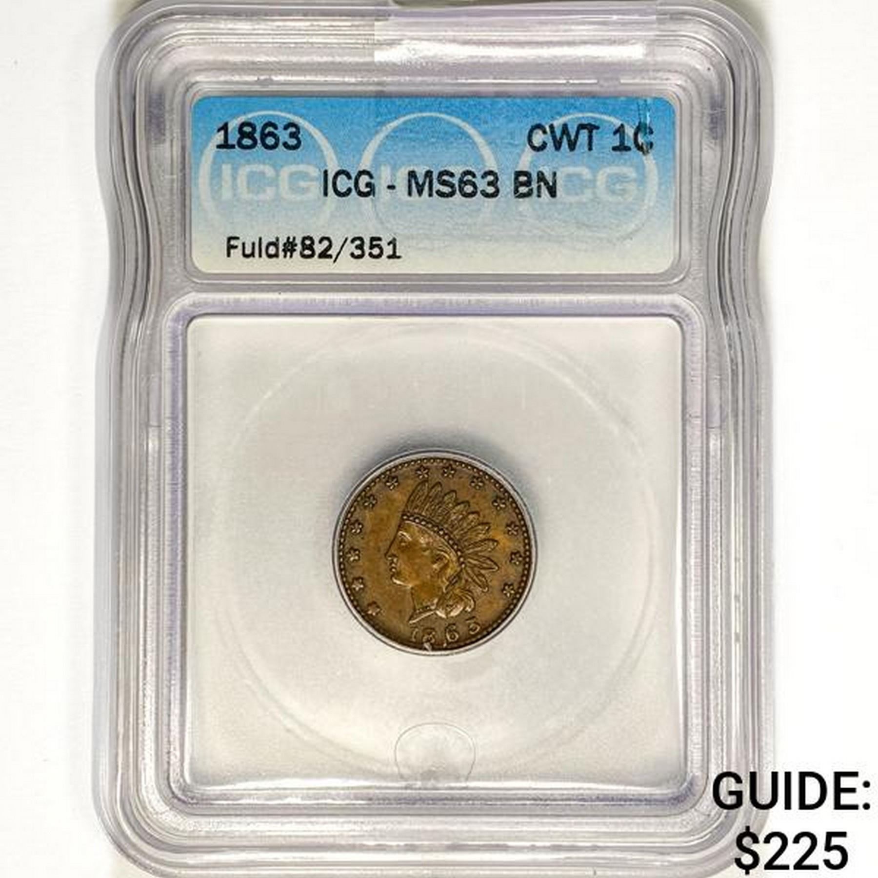 1863 CWT Cent Fuld#82/351 ICG MS63 BN