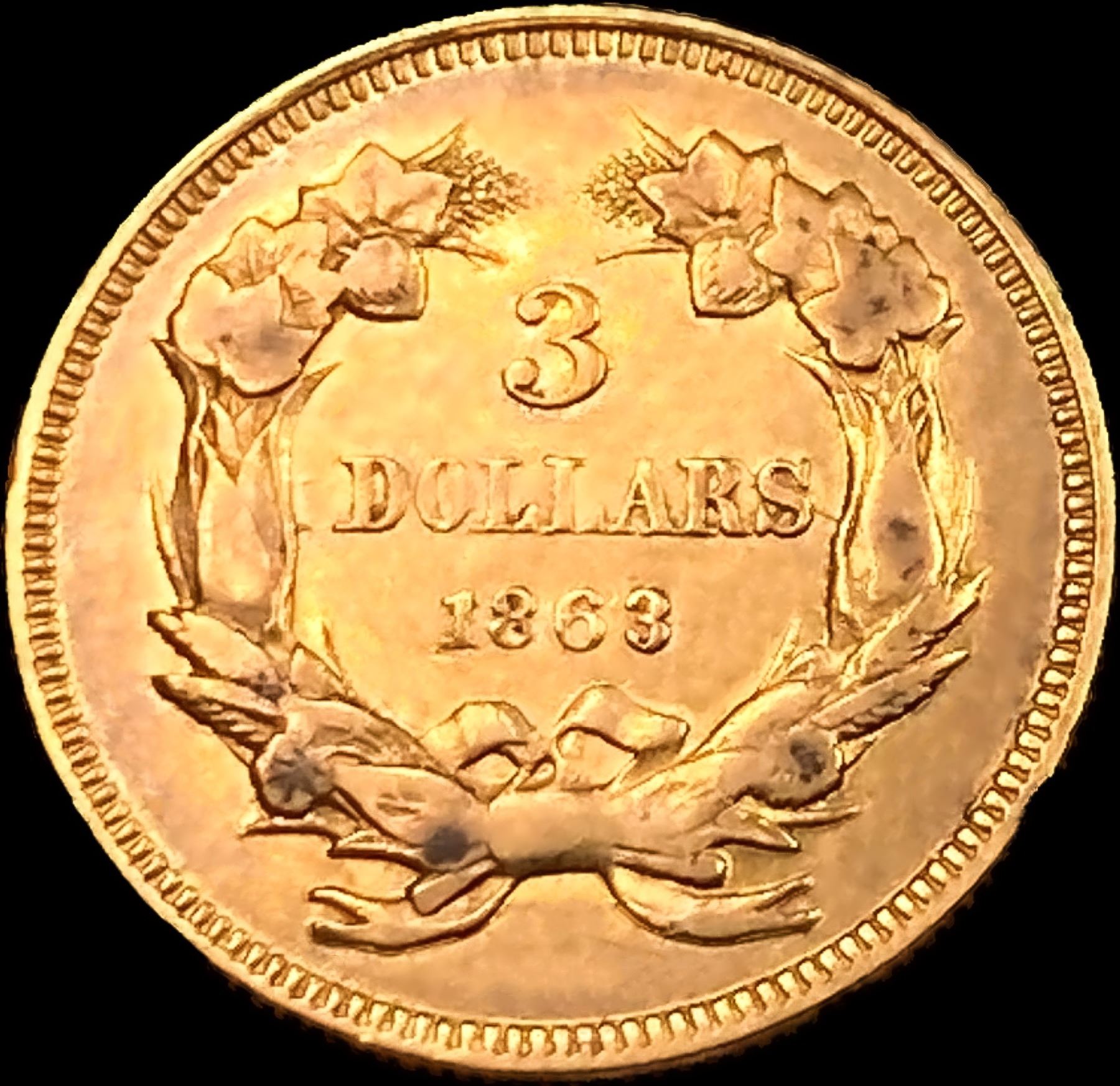 1863 Civil War Date $3 Gold Piece HIGH GRADE