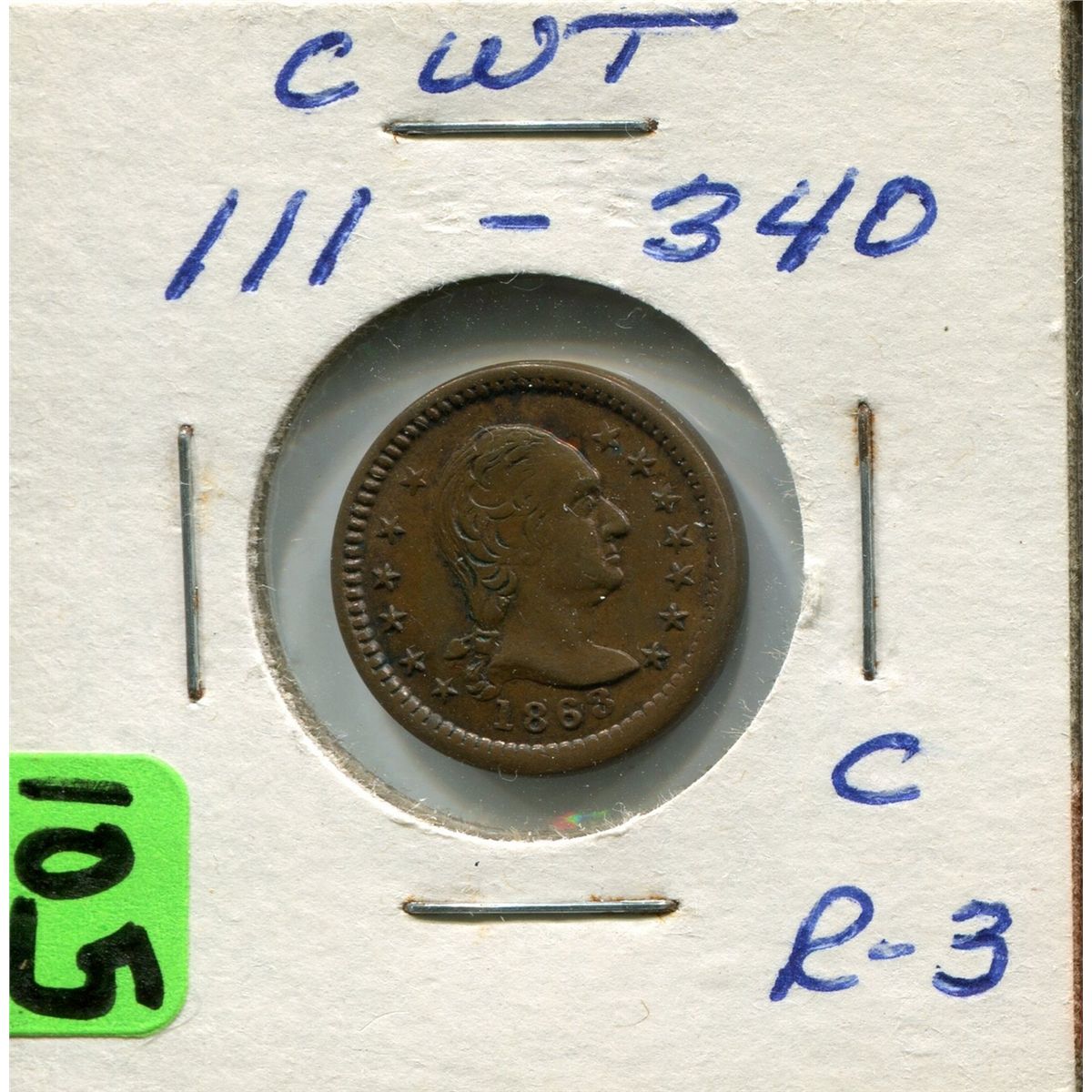 Type 111-340, Rarity: R-3, Patriotic shield motif on reverse