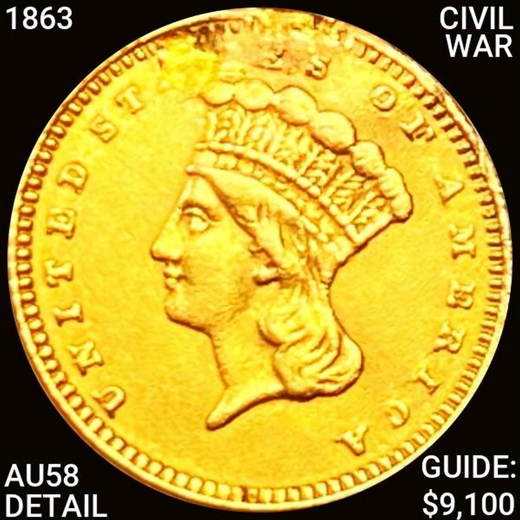 1863 Civil War Rare Gold Dollar CHOICE AU DETAIL