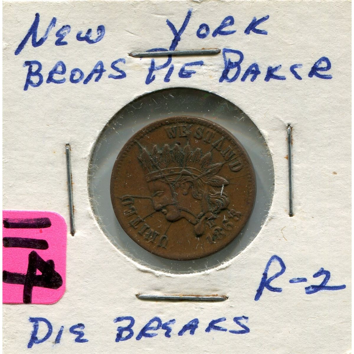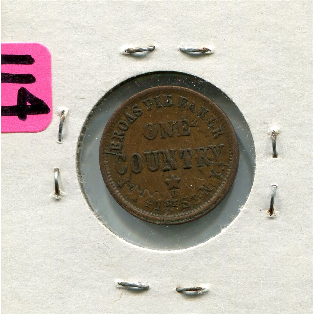 New York, Broas Pie Baker, One Country, United We Stand. This token is full of visible die breaks from when it was made. Rarity: R-2