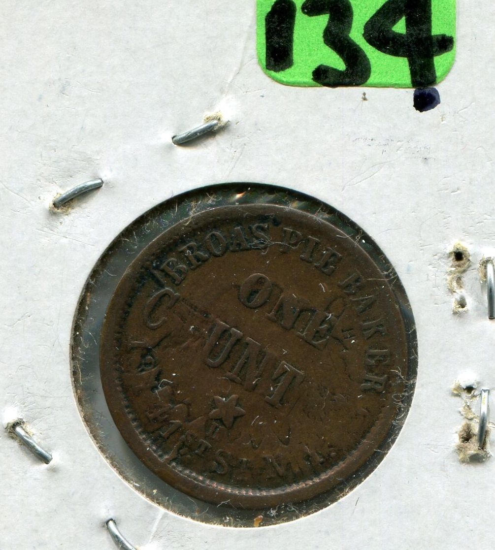 Rarity: R-1, Broas Pie Bakery, United We Stand with obvious breaks in the die when it was casted. Notice the way someone changed "Our Country" into a different, not so pleasant phrase.