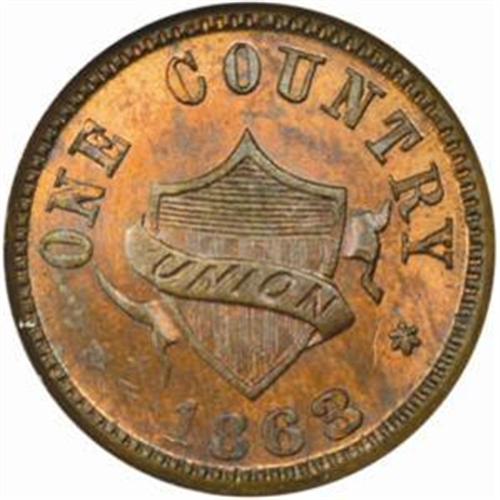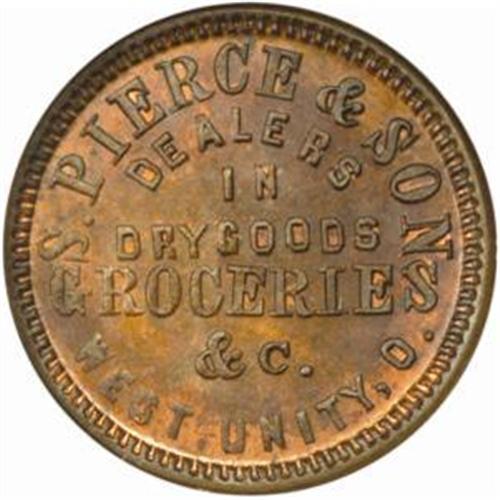 1863 Civil War Store Card. West Unity, Ohio. S. Pierce & Son. CWT-930C-2a. Rarity-5. MS-64 RB (NGC).