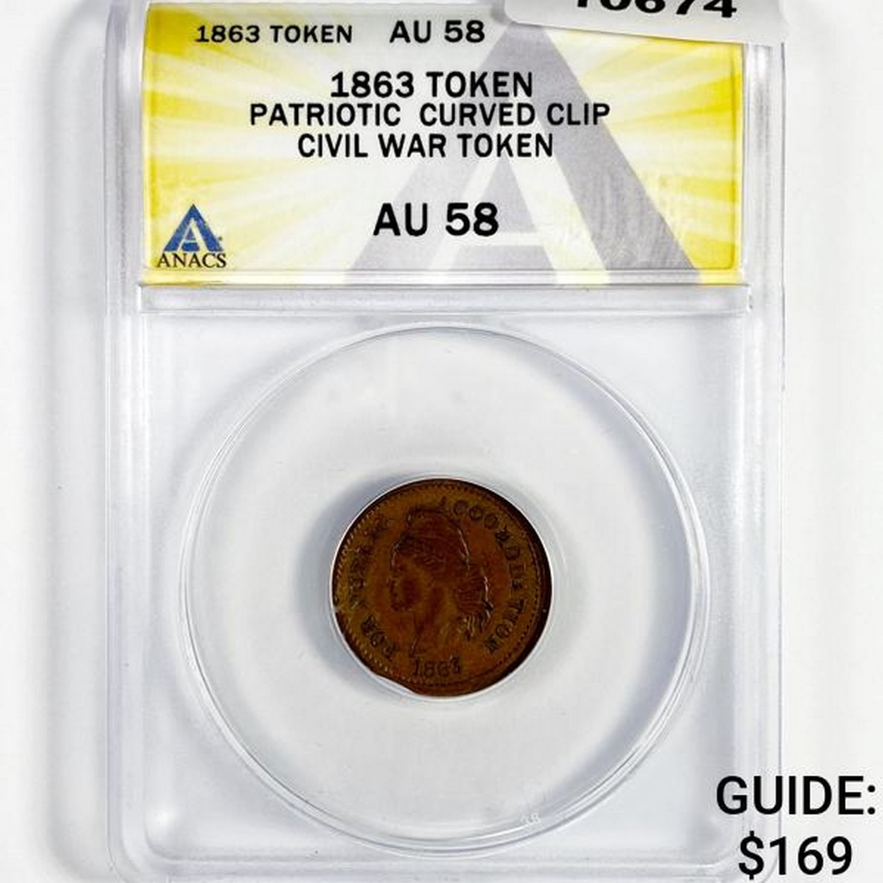 1863 Civil War Token ANACS-AU58 Curved Clip