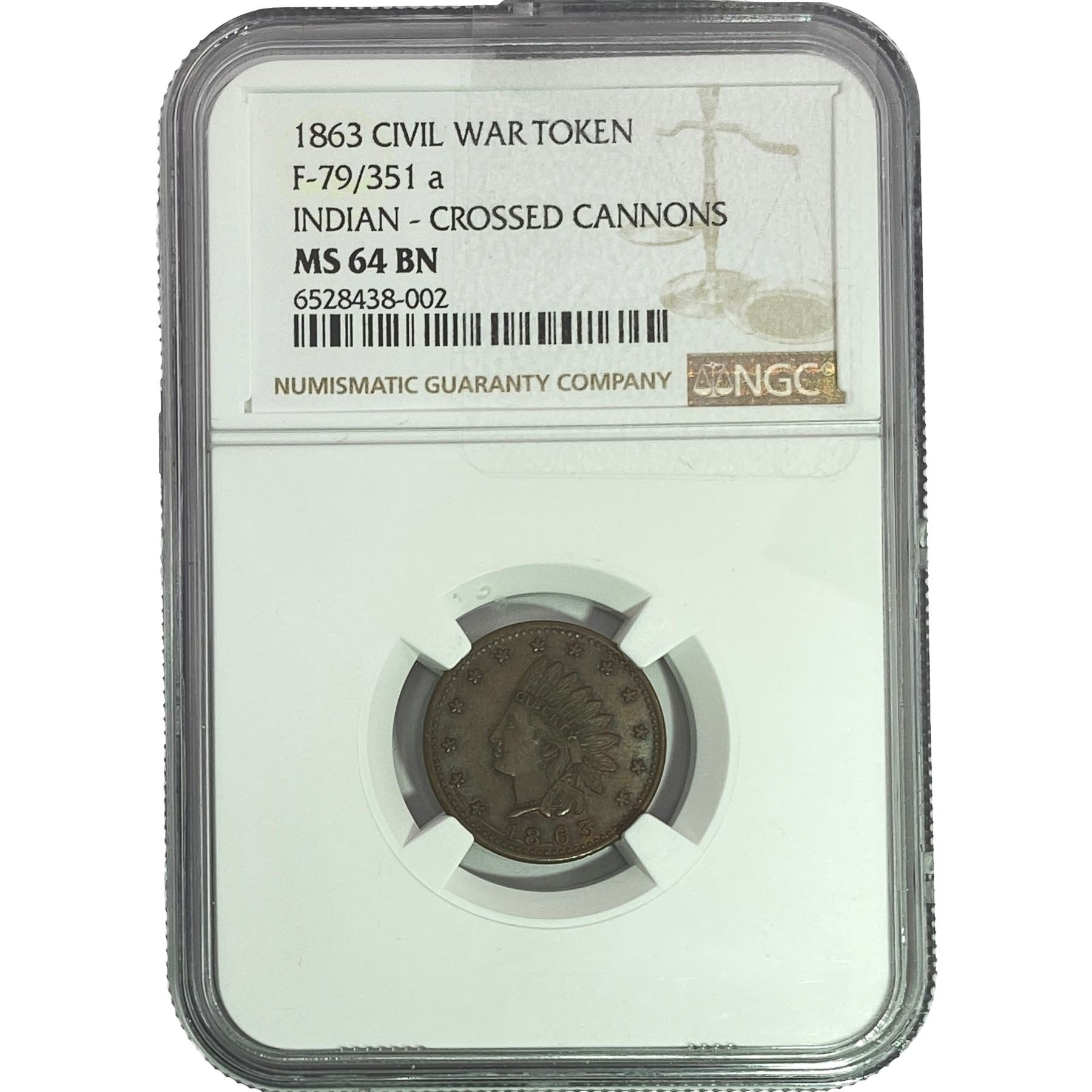 1863 Civil War Token F-79/351 a NGC MS64 BN