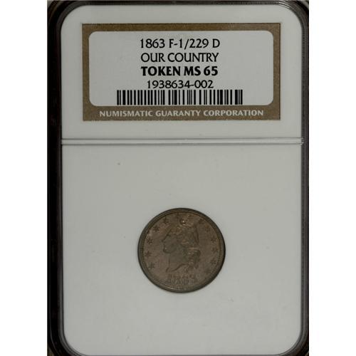 1863 Civil War Token, Fuld 1/229D, R.7, MS65 NGC. A nic