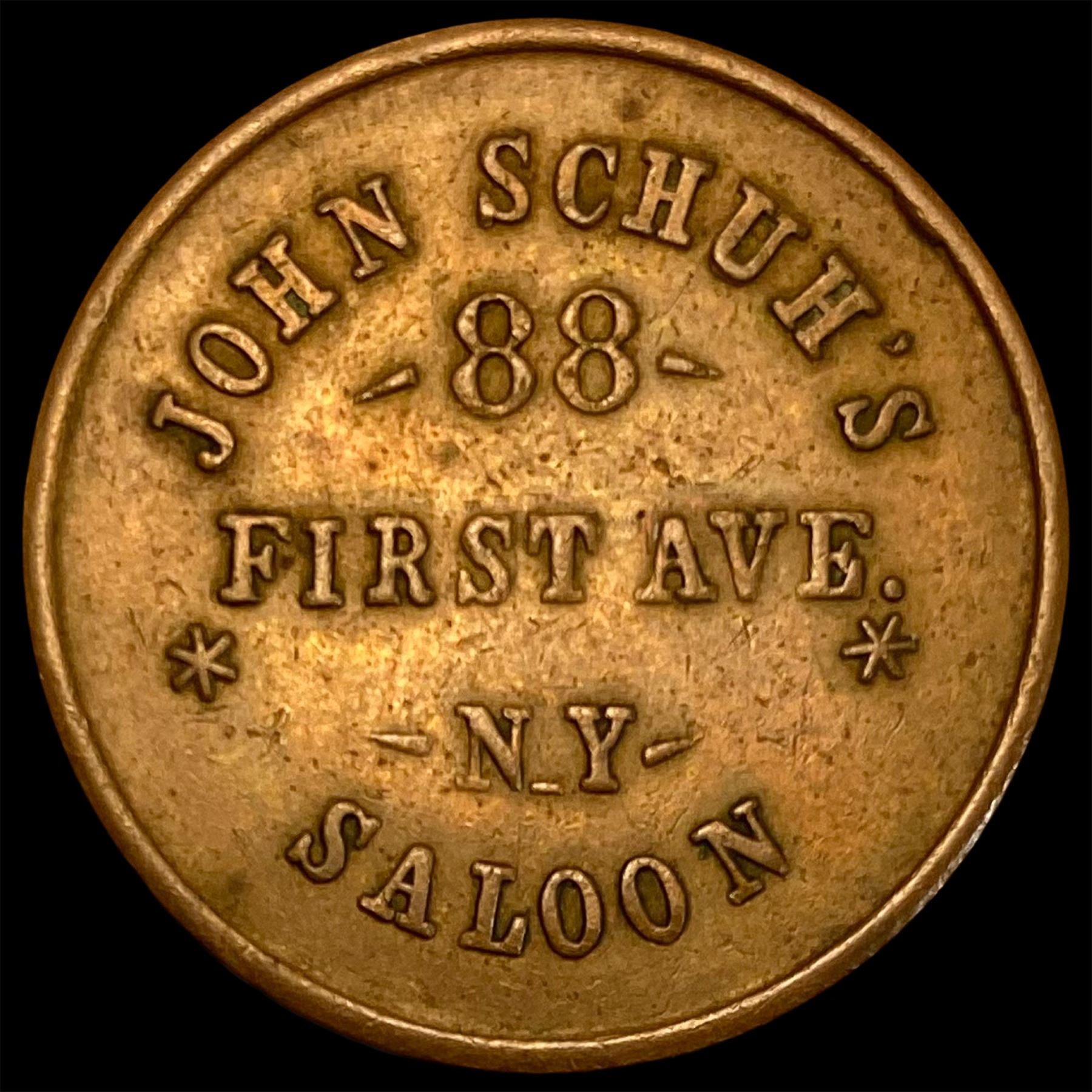 1863 Civil War Token John Schuh's Saloon NY. CLOSELY UNCIRCULATED