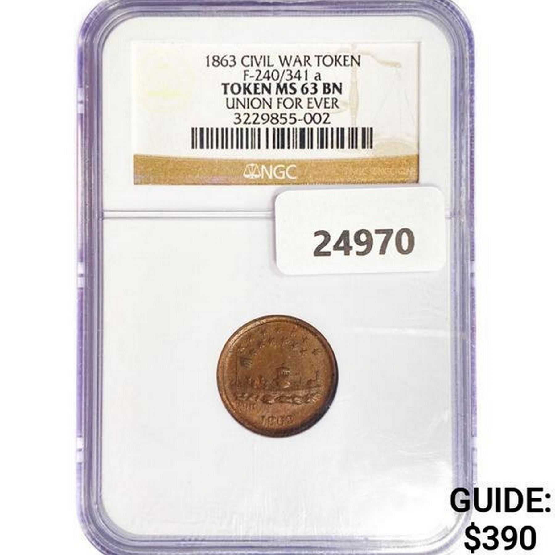 1863 Civil War Token NGC MS63 BN, F-240/341 a