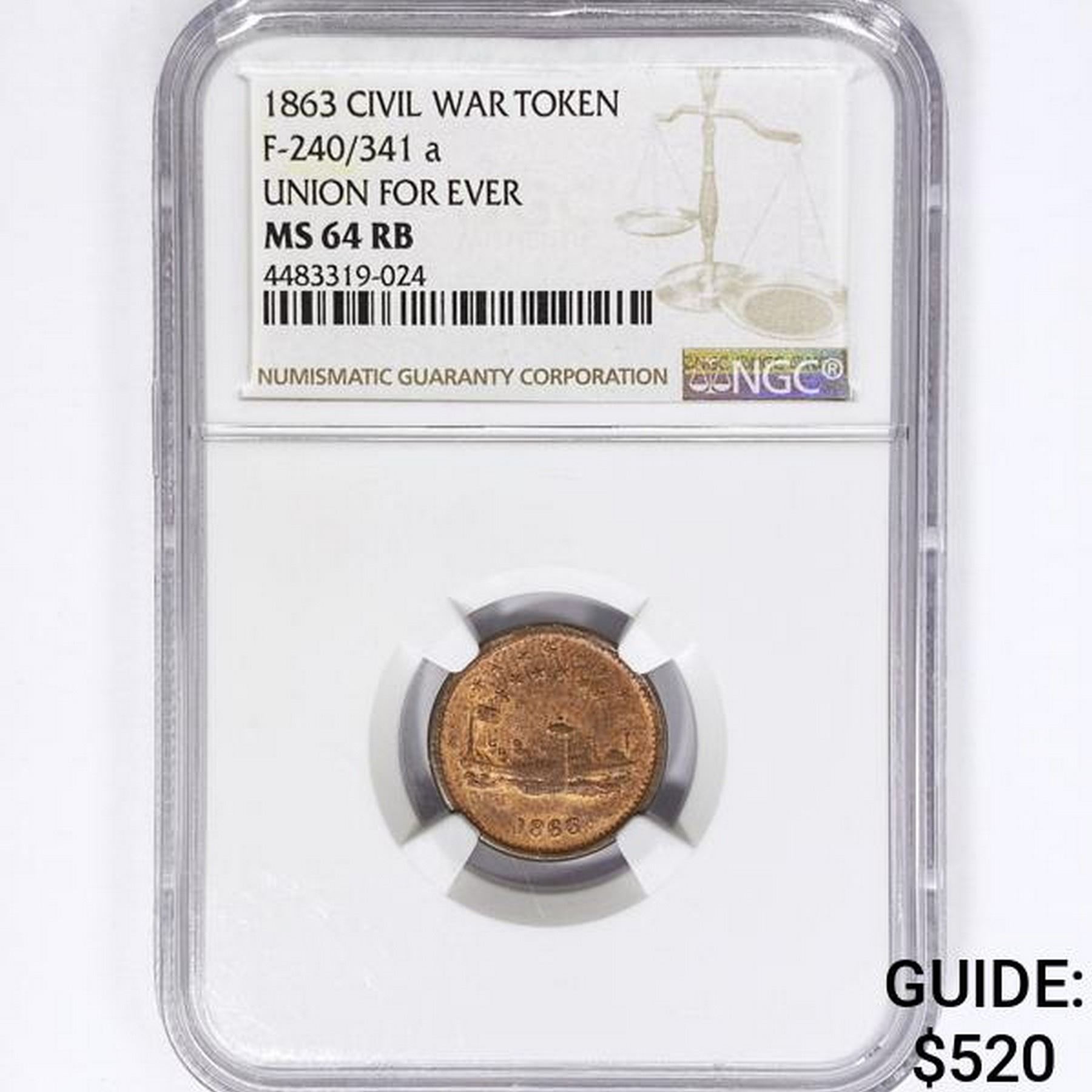 1863 Civil War Token NGC MS64 RB F-240/341 a