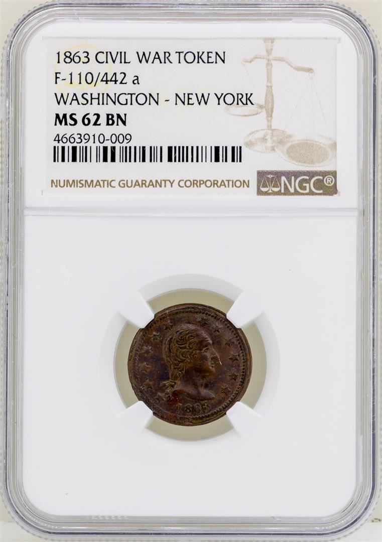 One 1863 Civil War Token Washington - New York NGC MS62BN. NGC Certified.