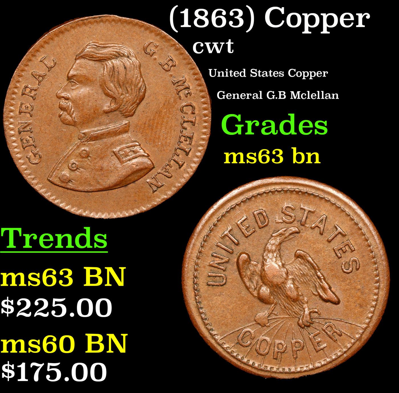 (1863) Copper Civil War Token 1c Grades Select Unc BN.