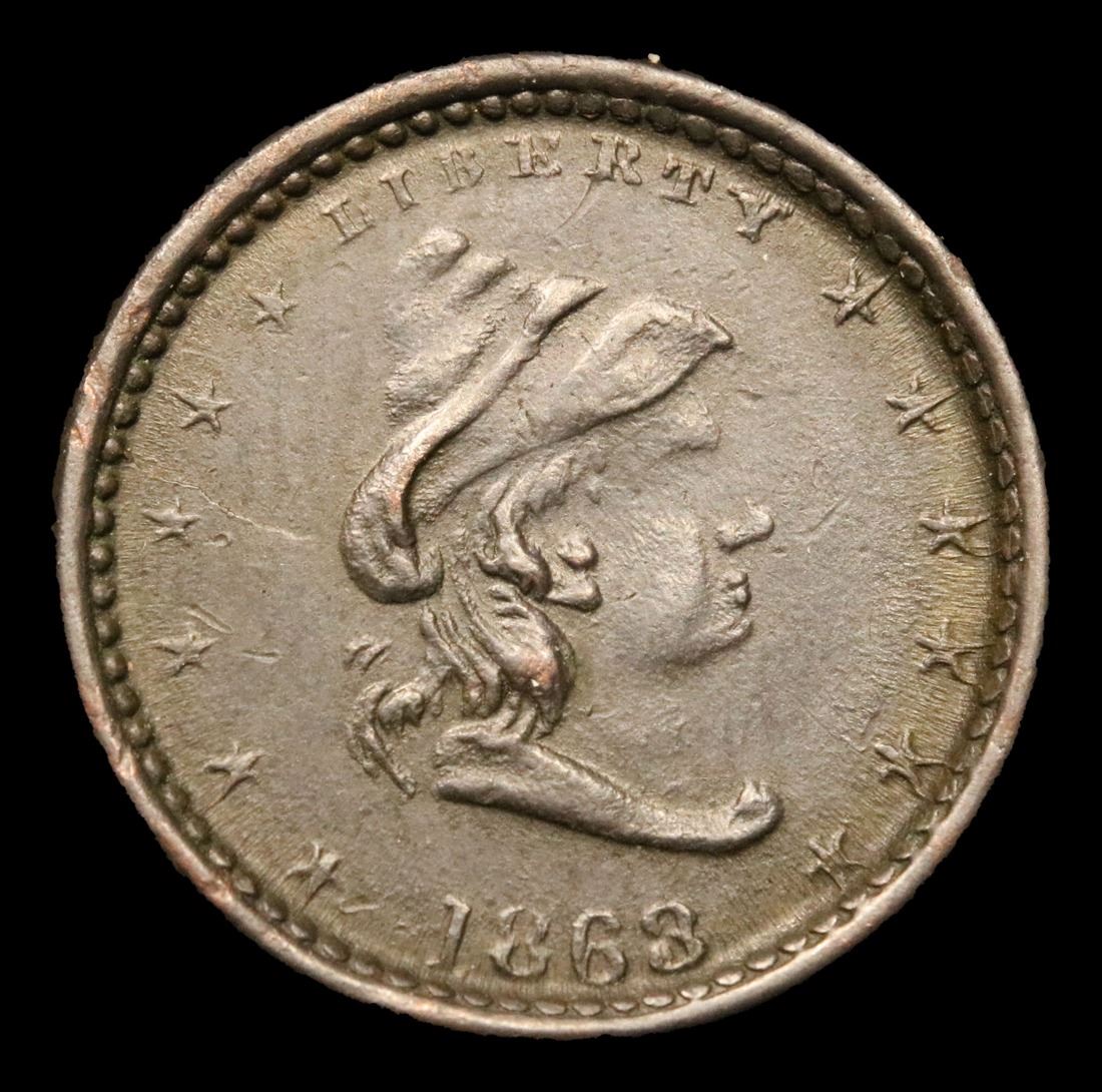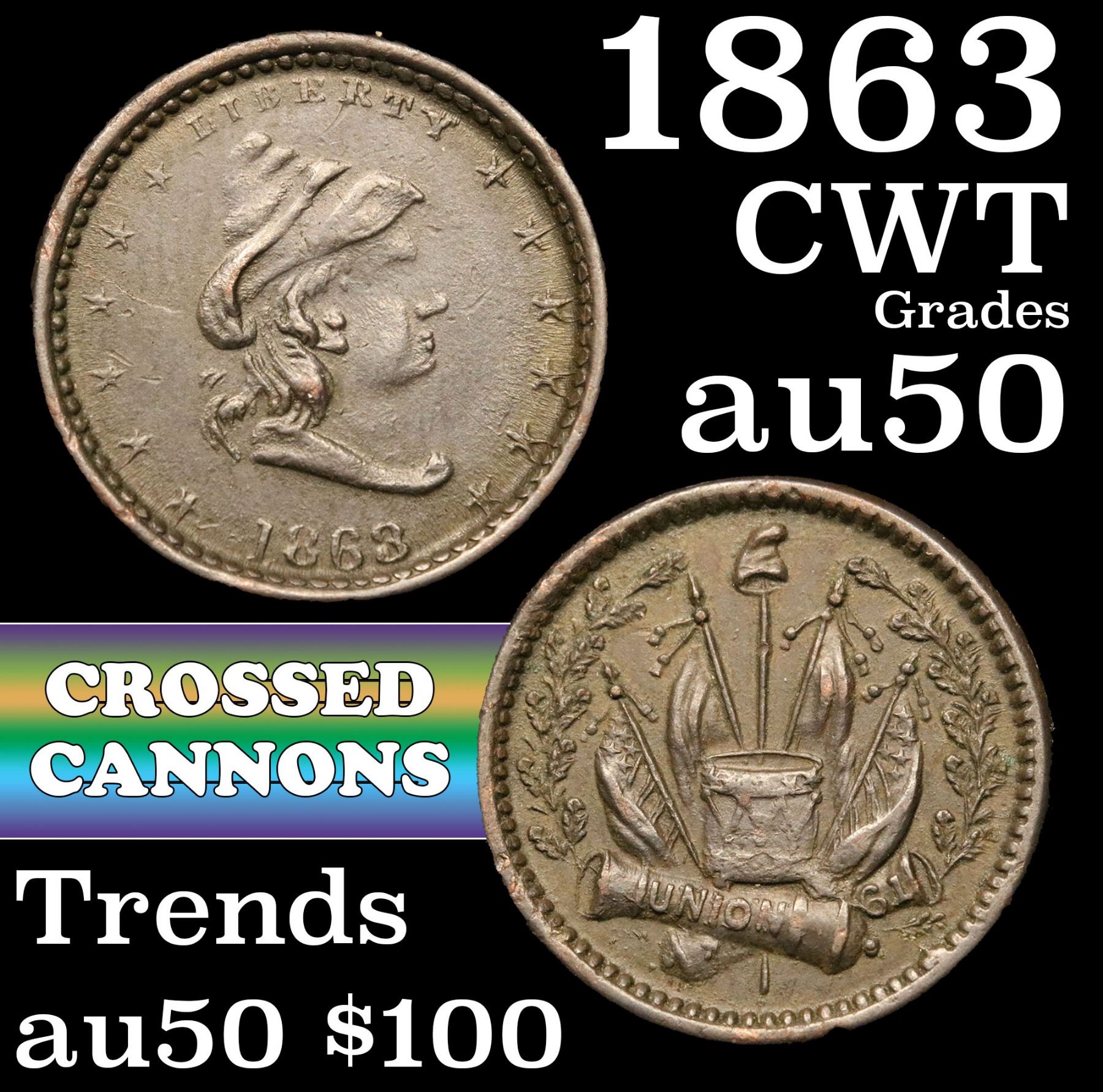 1863 Crossed Cannons Civil War Token 1c Grades AU, Almost Unc.