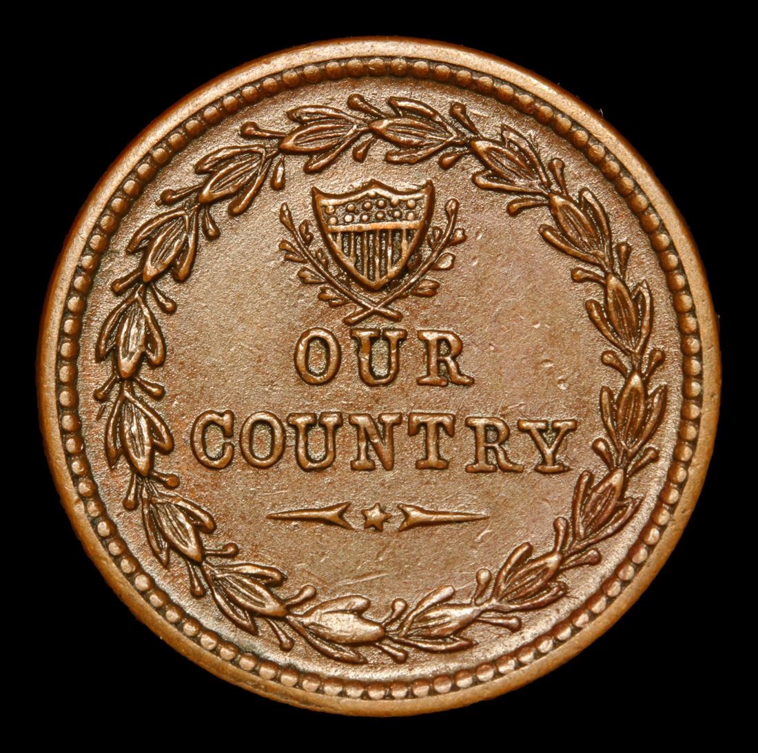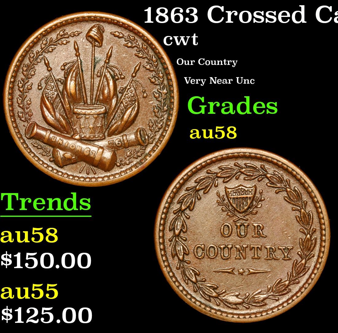 1863 Crossed Cannons Civil War Token 1c Grades Choice AU/BU Slider. Our Country Very Near Unc A Corey's Pick