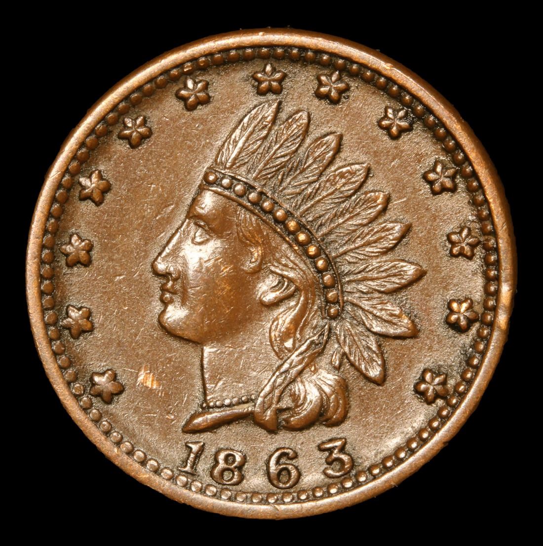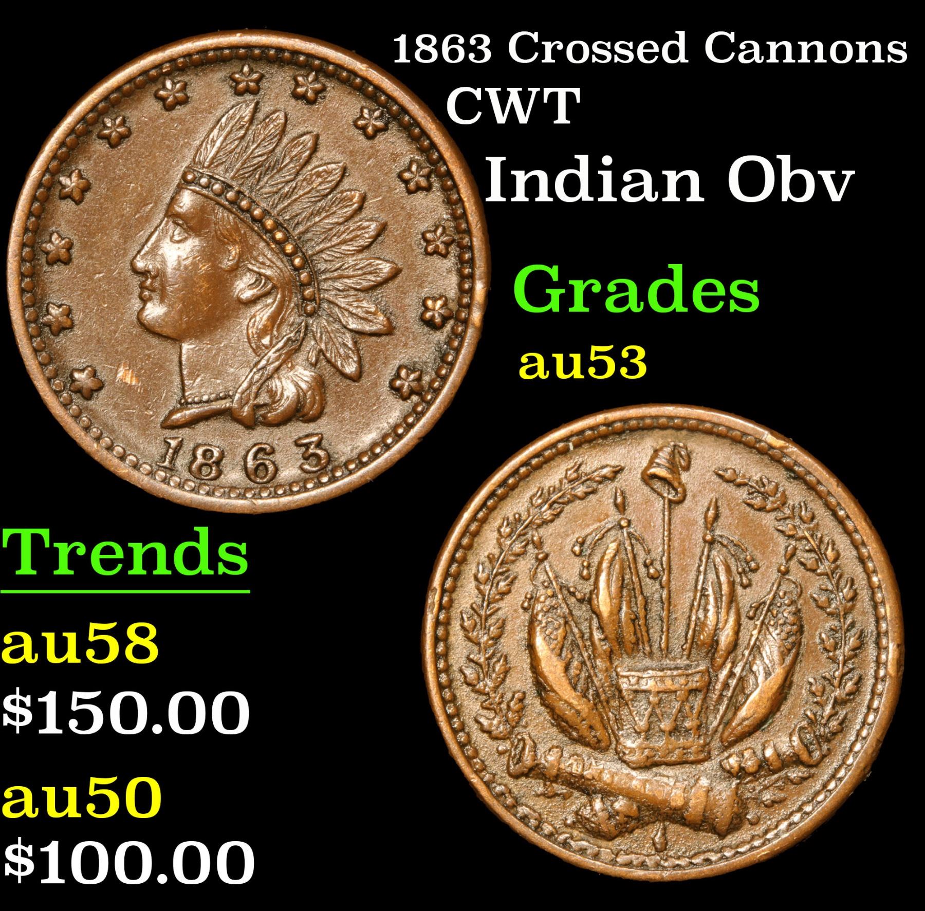 1863 Crossed Cannons Civil War Token 1c Grades Select AU. Indian Obv