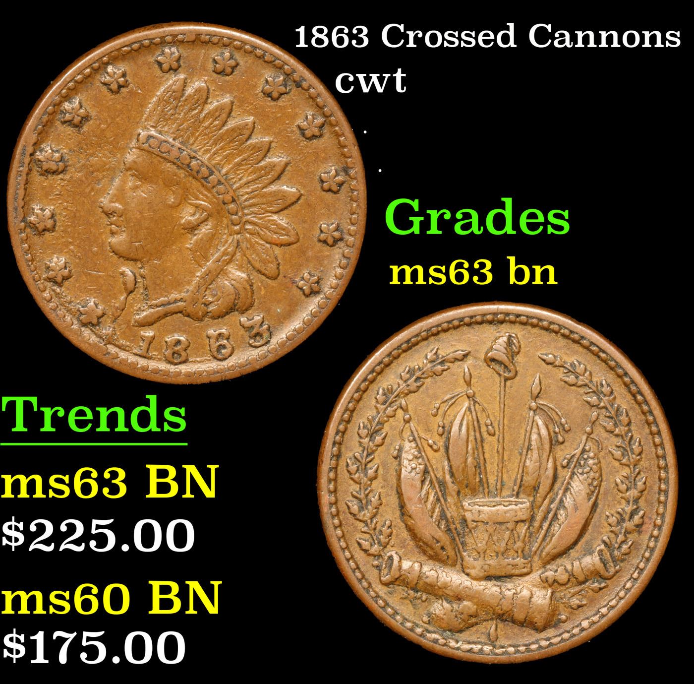 1863 Crossed Cannons Civil War Token 1c Grades Select Unc BN.