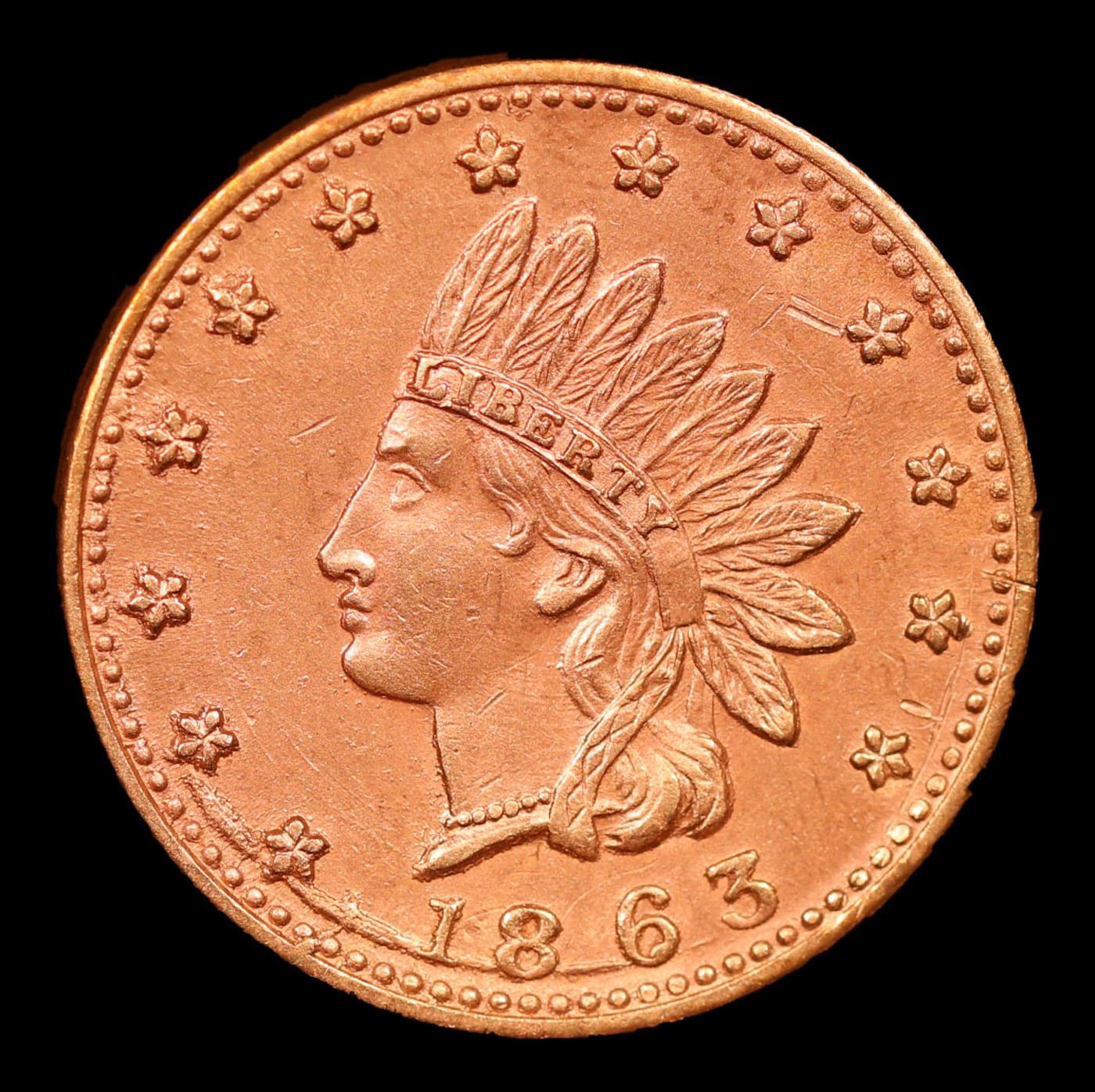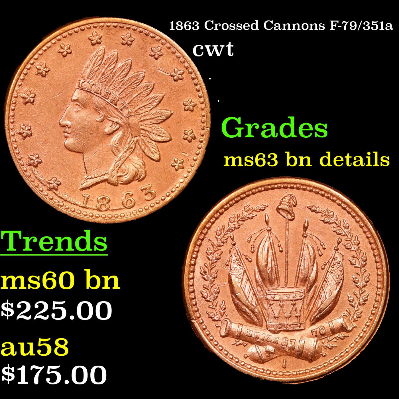 1863 Crossed Cannons F-79/351a Civil War Token 1c Grades Unc details.