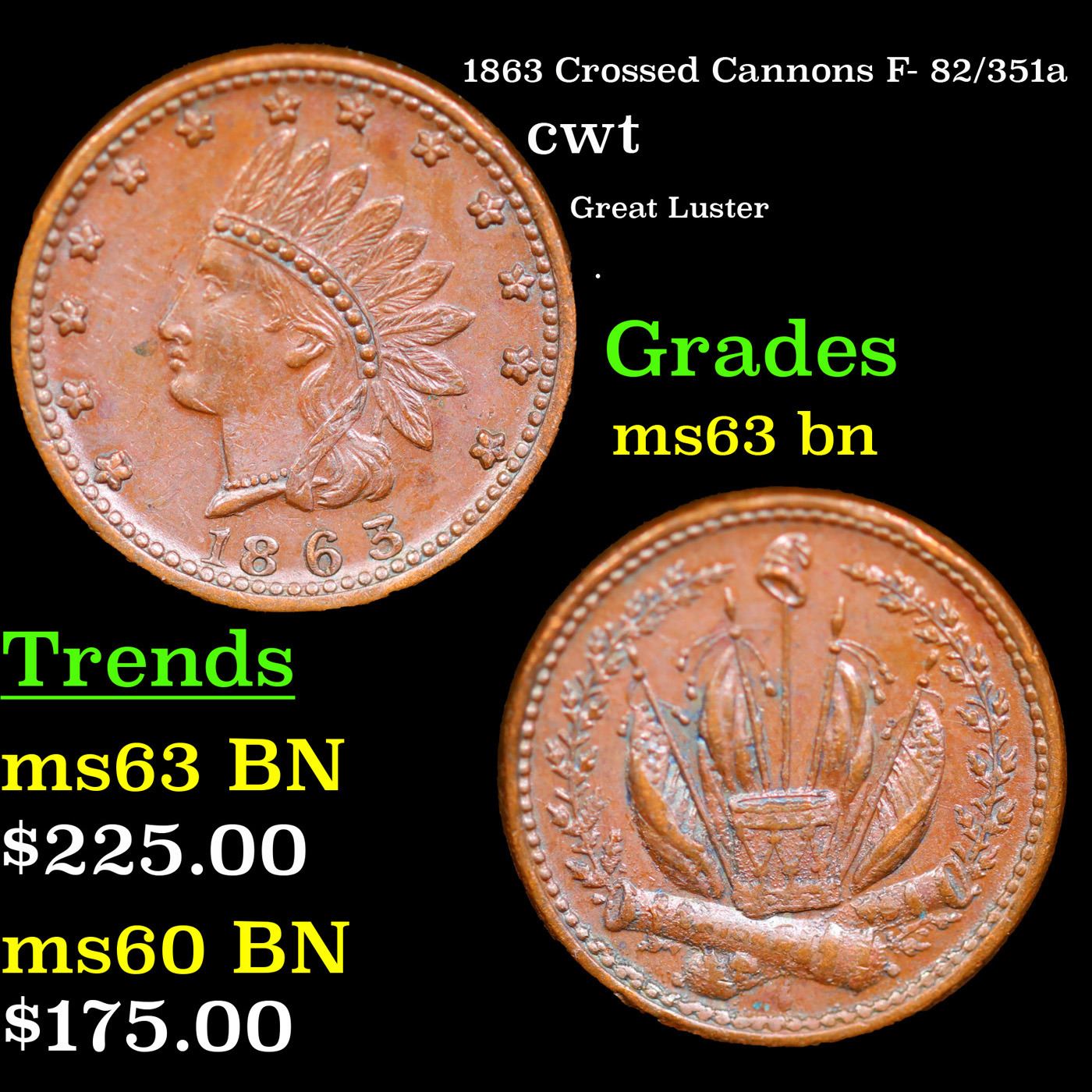 1863 Crossed Cannons F- 82/351a Civil War Token 1c Grades Select Unc BN.