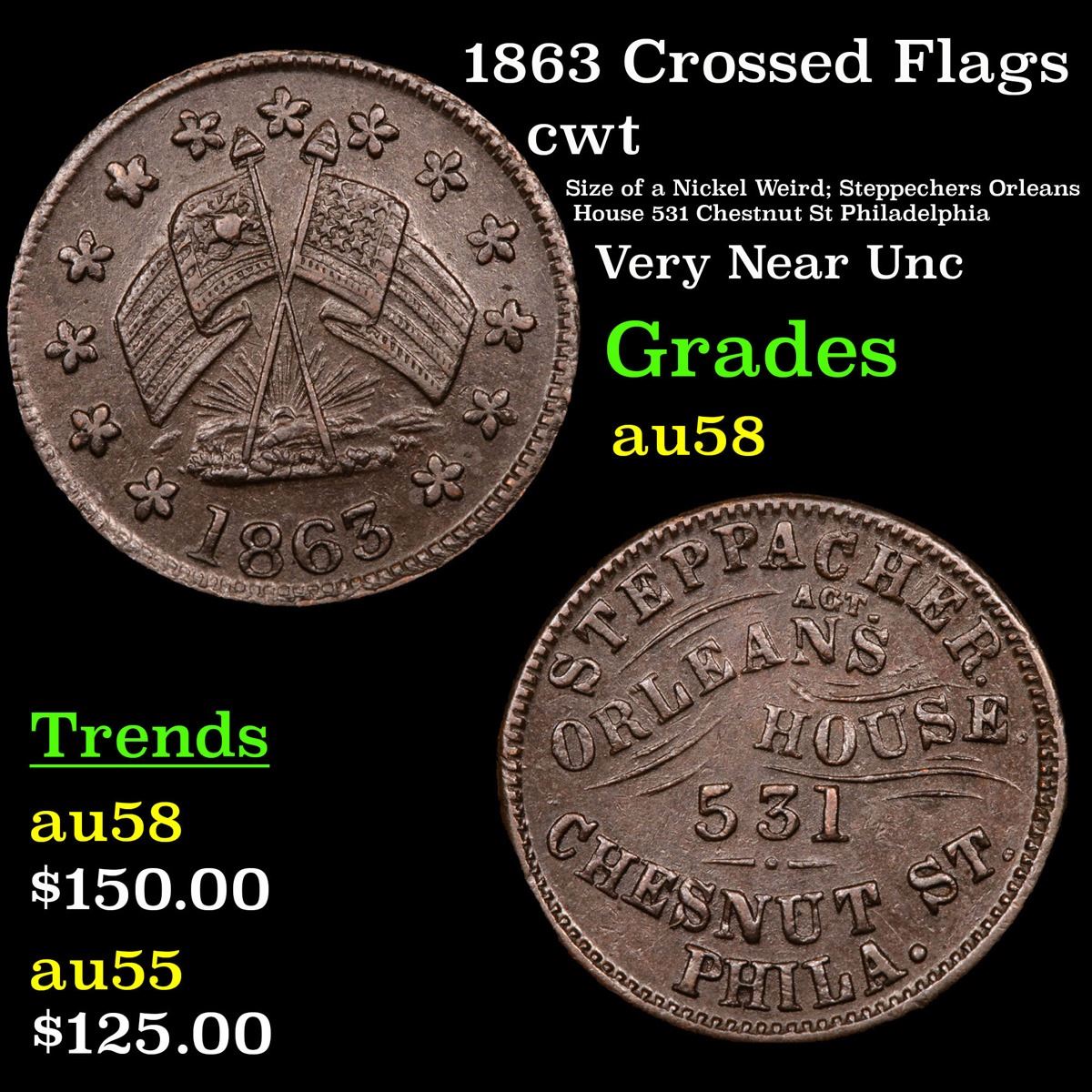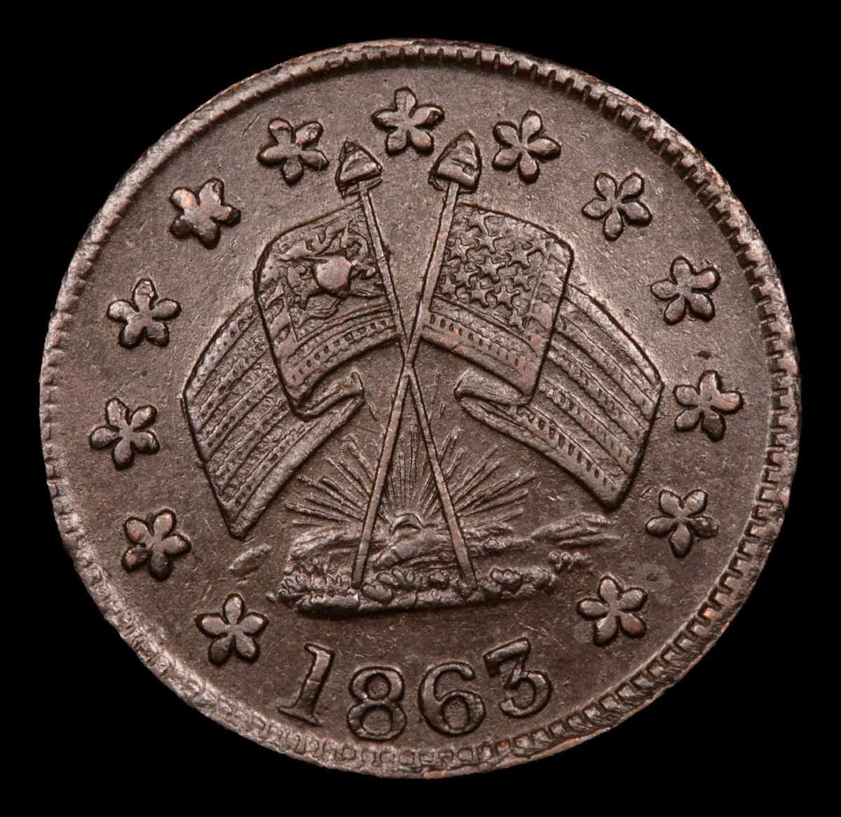 1863 Crossed Flags Civil War Token 1c Grades Choice AU/BU Slider.