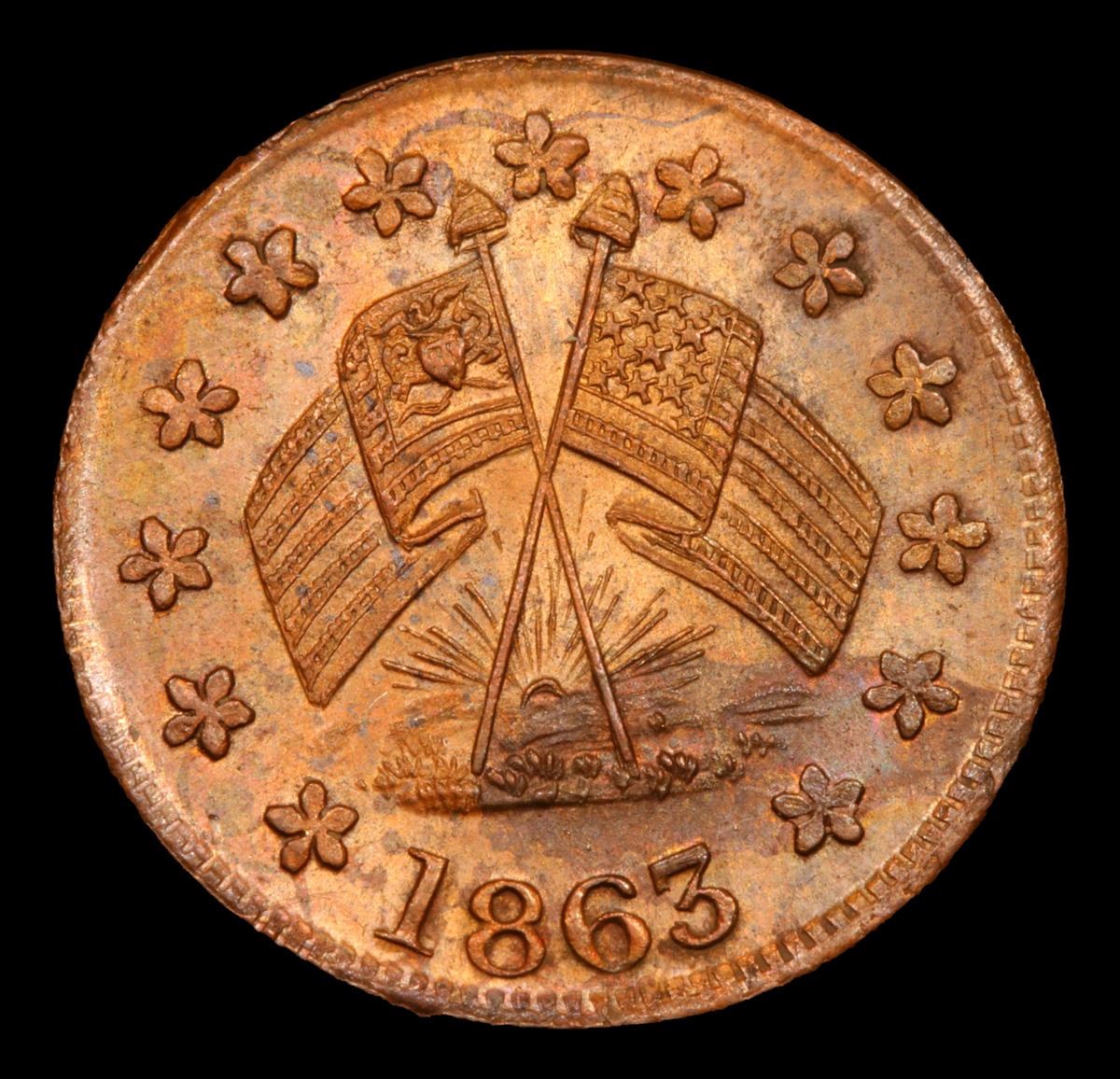 1863 Crossed Flags Fuld 705D-2A/1381 R4 Civil War Token 1c Grades Choice Unc RB.