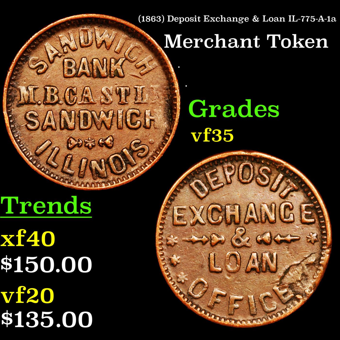 (1863) Deposit Exchange & Loan IL-775-A-1a Merchant Token 1c Grades vf++.