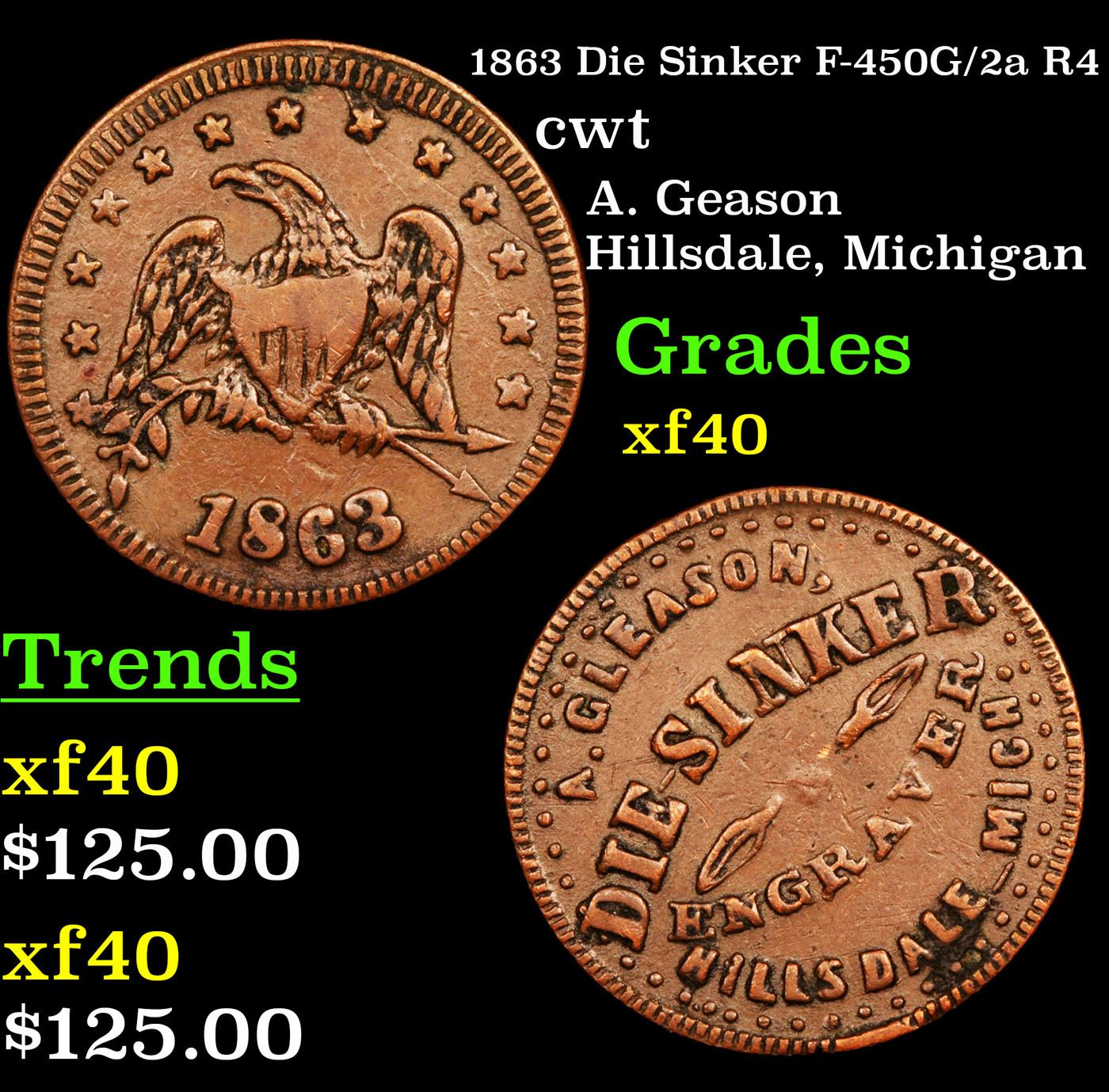 1863 Die Sinker F-450G/2a R4 Civil War Token 1c Grades xf.