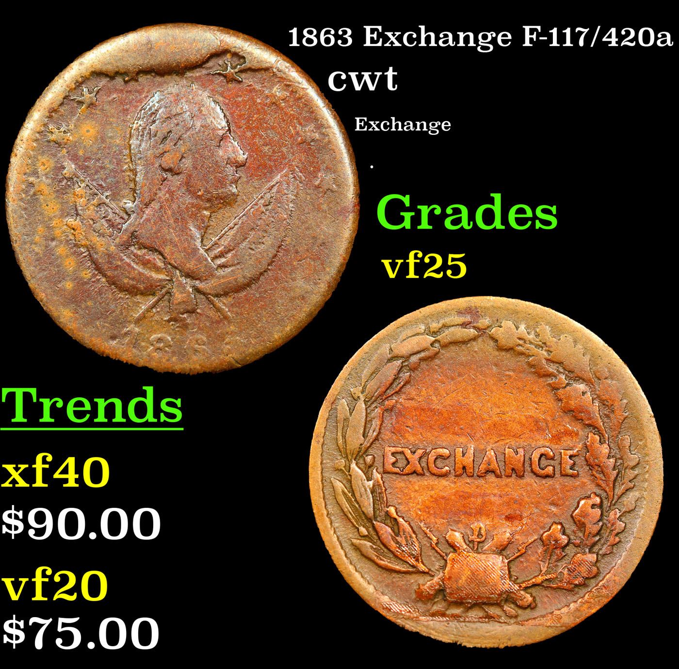 1863 Exchange F-117/420a Civil War Token 1c Grades vf+.
