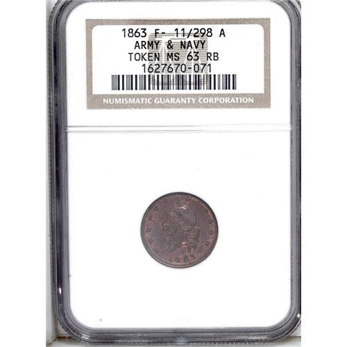 <B>1863 Army & Navy, Fuld-11/298a, MS63 Red and Brown NGC.</B></I> A pleasant example with lots of original luster remaining.