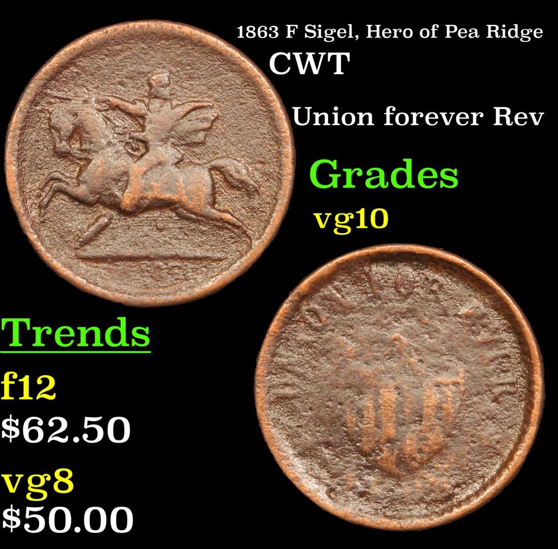 1863 F Sigel, Hero of Pea Ridge Union forever Rev . Civil War Token 1c Grades vg+.