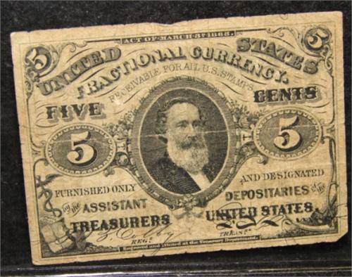 1863 FIVE CENT FRACTIONAL CURRENCY NOTE. Fine.