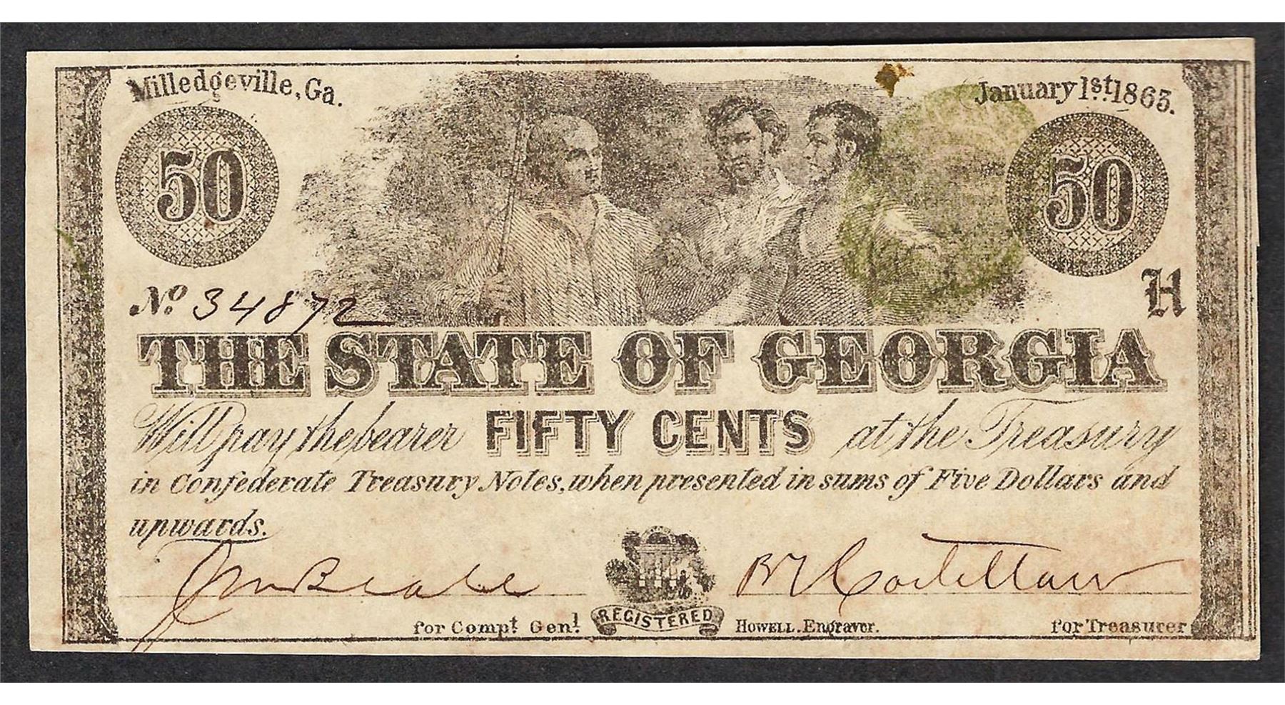 One 1863 Fifty Cents The State of Georgia Obsolete Note.