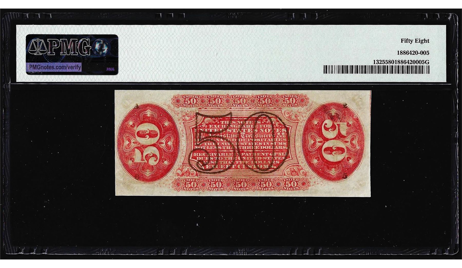 One 1863 Fifty Cents Third Issue Fractional Note Fr.1325 PMG Choice About Uncirculated 58. PMG Certified.